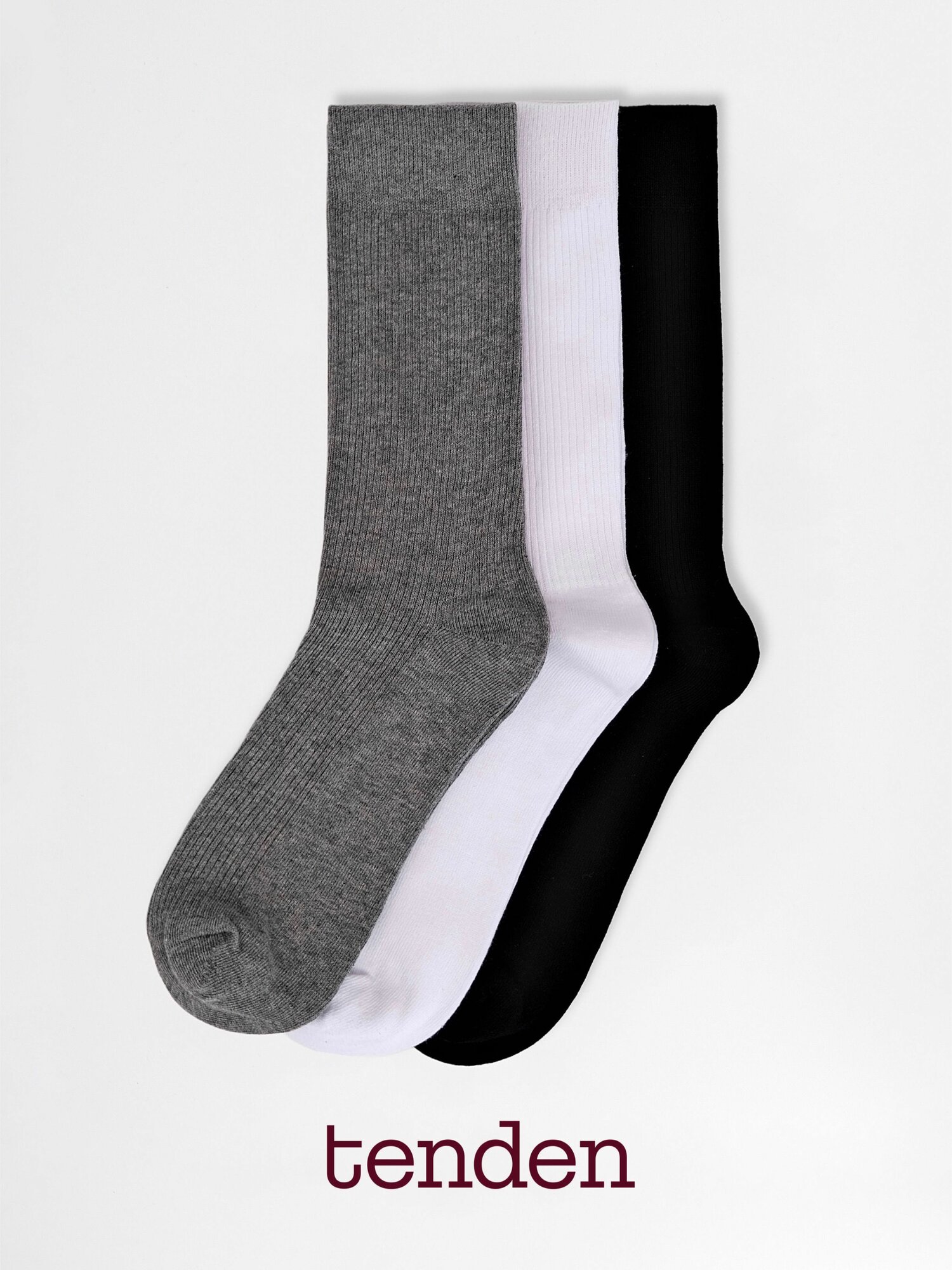 Купить Носки TENDEN Осень-зима 2024, комплект, 3 пары, размер 39-41, белый/серый/черный