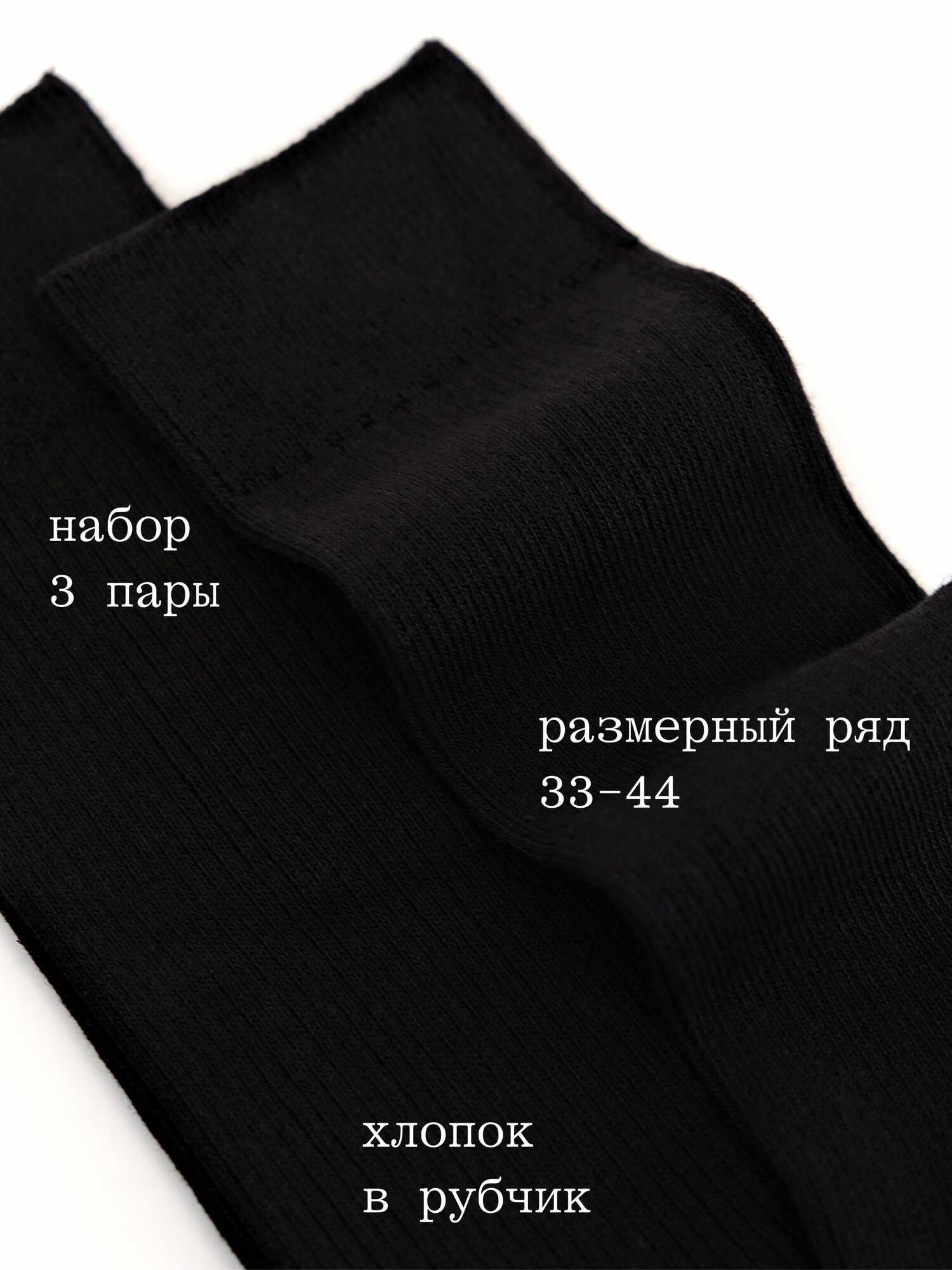 Носки TENDEN Осень-зима 2024, комплект, 3 пары, размер 33-35, черный