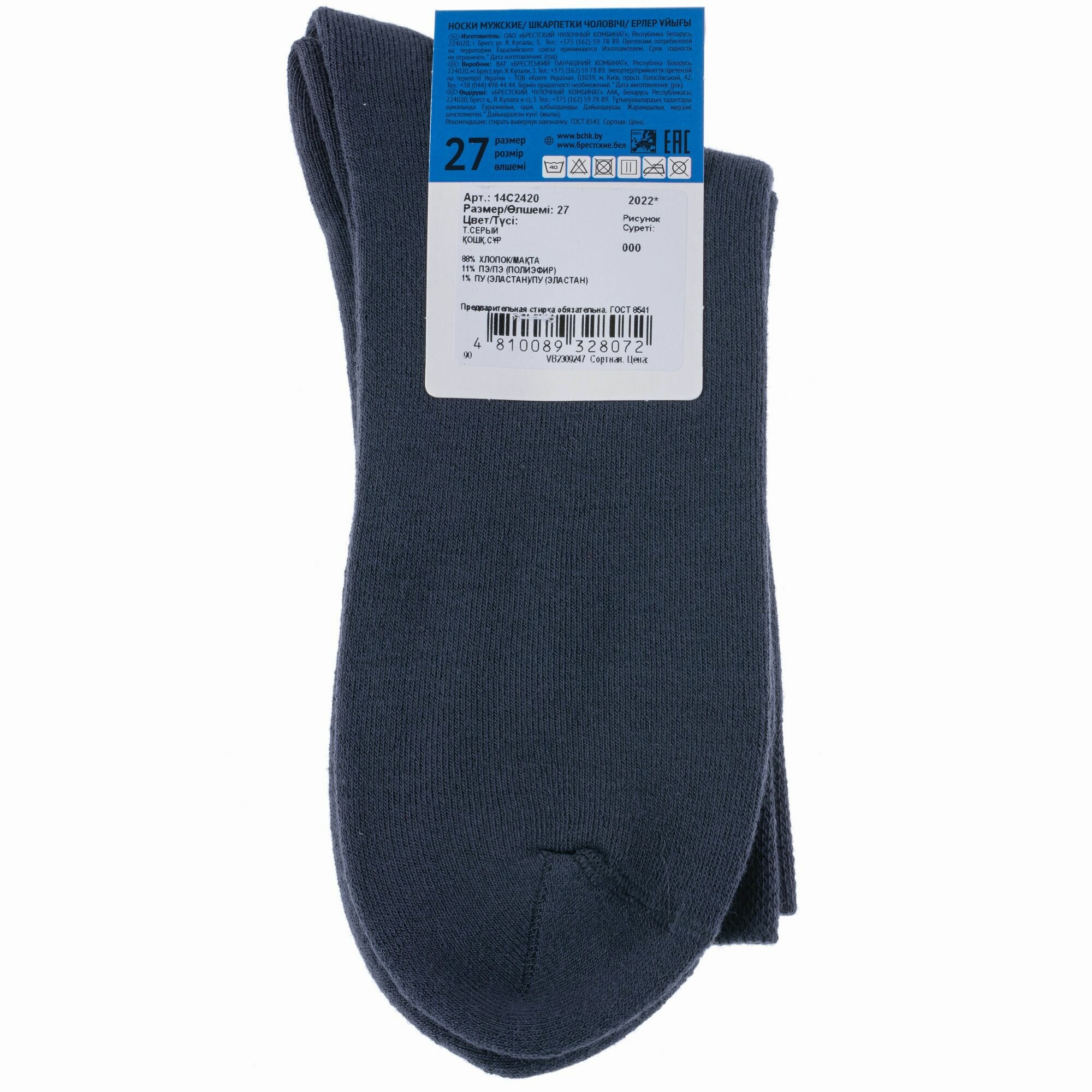 Носки Брестский Чулочный Комбинат Базовая коллекция, размер 27 (42-43), серый