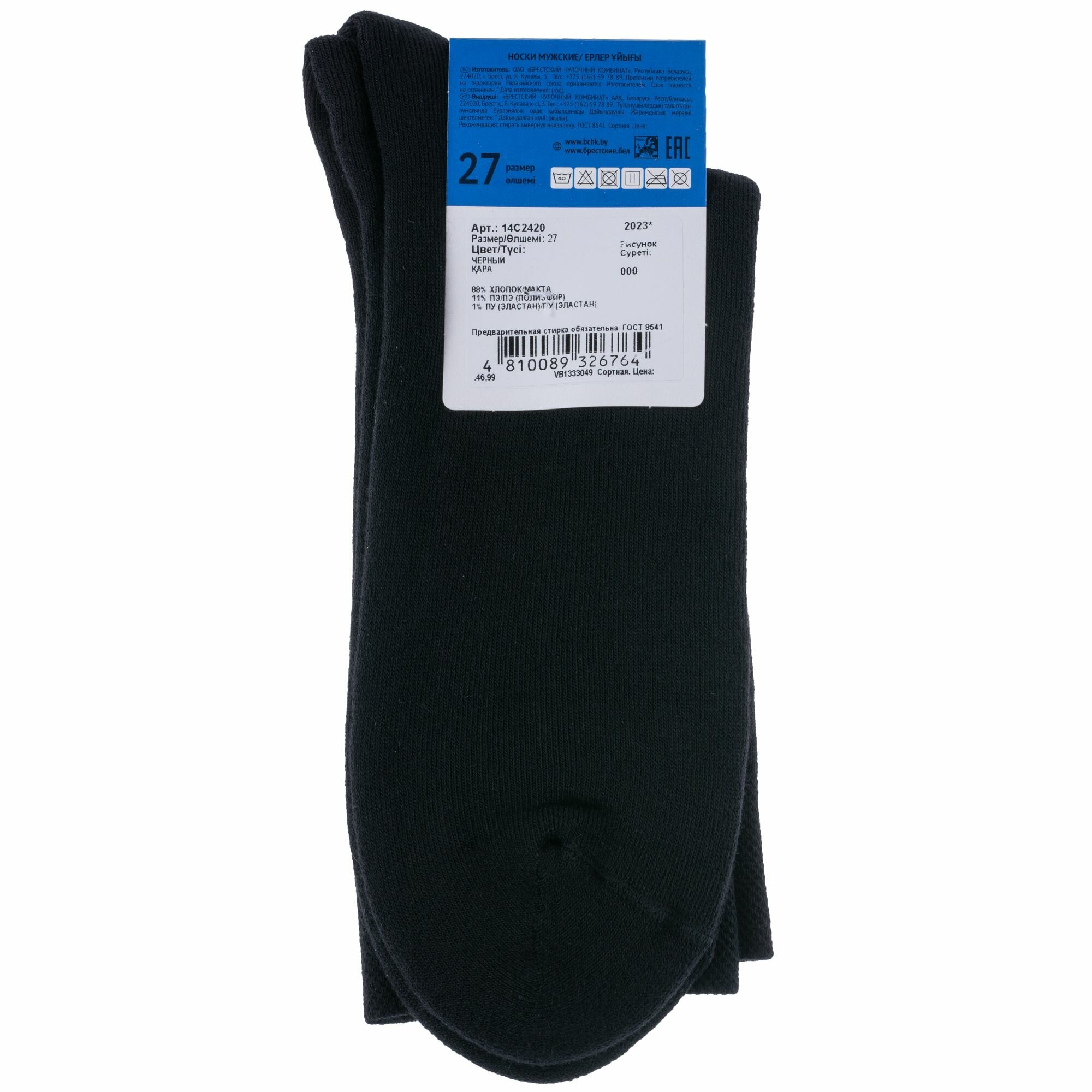 Носки Брестский Чулочный Комбинат Базовая коллекция, размер 23 (38-39), рис. 000, ЧЕРНЫЕ