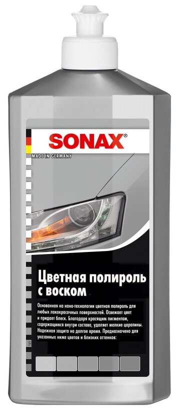 Воск для автомобиля SONAX цветной полироль с воском (серый) 0.5 л