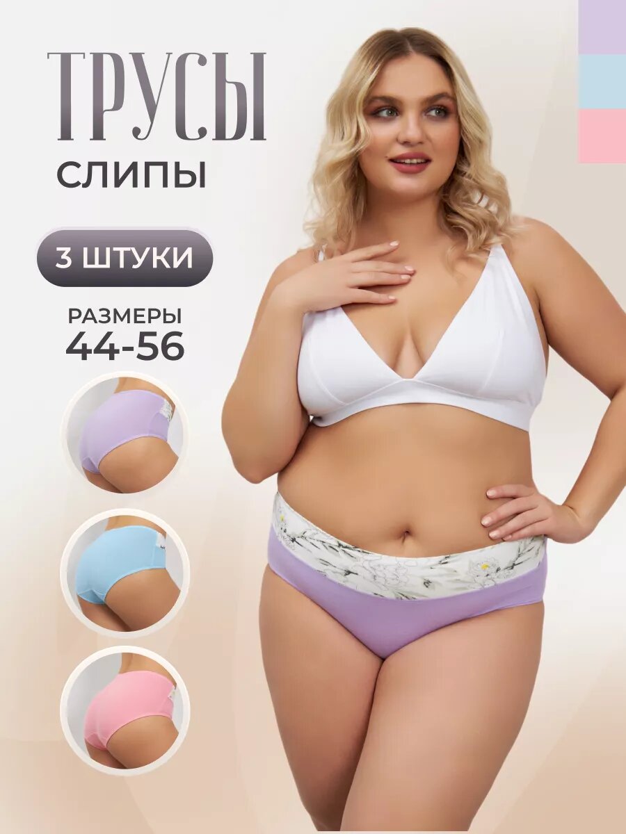 Трусы Inniko набор 3 шт, комплект из 3 шт., размер 3XL, голубой, фиолетовый, розовый