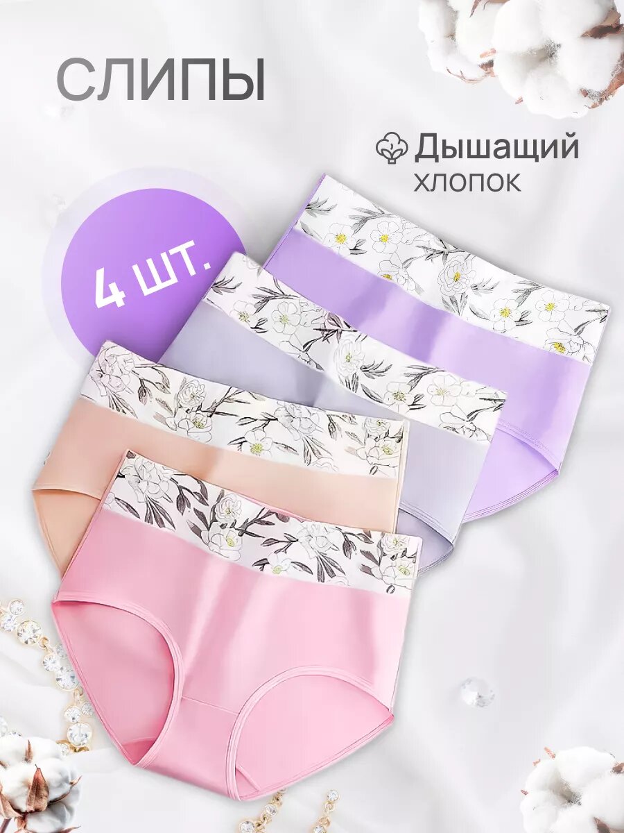 Купить Трусы Inniko набор 4 шт, комплект из 4 шт., размер XL, серый, желтый, фиолетовый, розовый