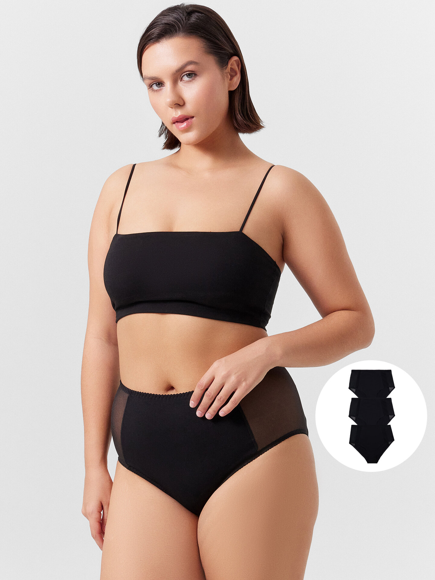 Панталоны женские хлопок Senso больших размеров с высокой посадкой и кружевной отделкой