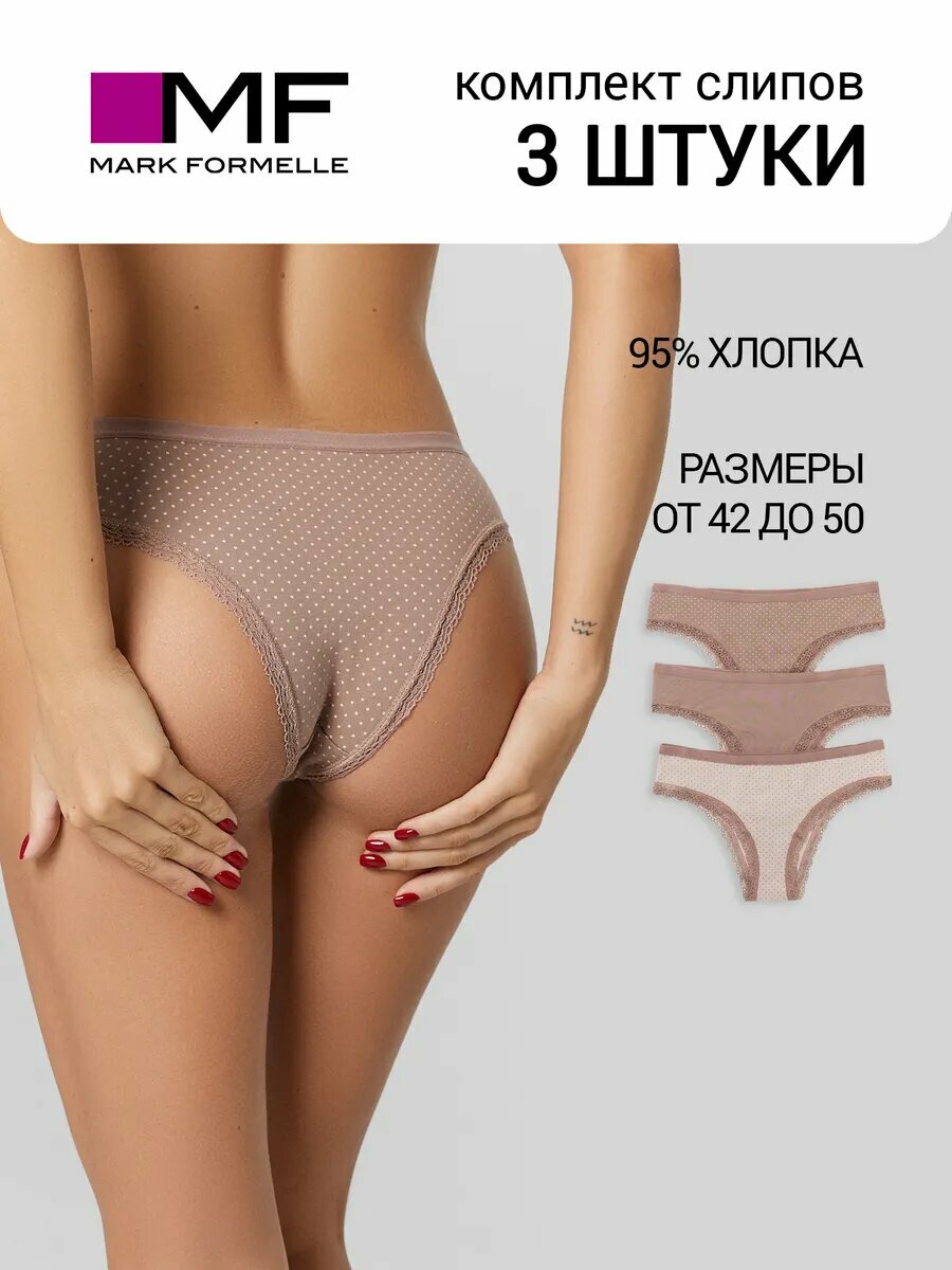 Трусы MARK FORMELLE нижнее белье, комплект из 3 шт., размер M, коричневый, бежевый