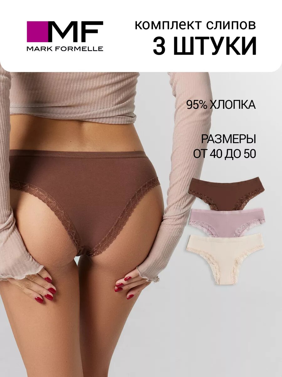 Трусы MARK FORMELLE нижнее белье, комплект из 3 шт., размер M, коричневый, бежевый