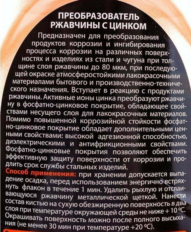 Ниже Вы можете прочитать отзывы на Преобразователь ржавчины Элтранс с цинком, 500 мл EL-0702.08, ознакомится с подробными характеристиками, посмотреть интересные обзоры и фотографии на Преобразователь ржавчины Элтранс с цинком, 500 мл EL-0702.08.