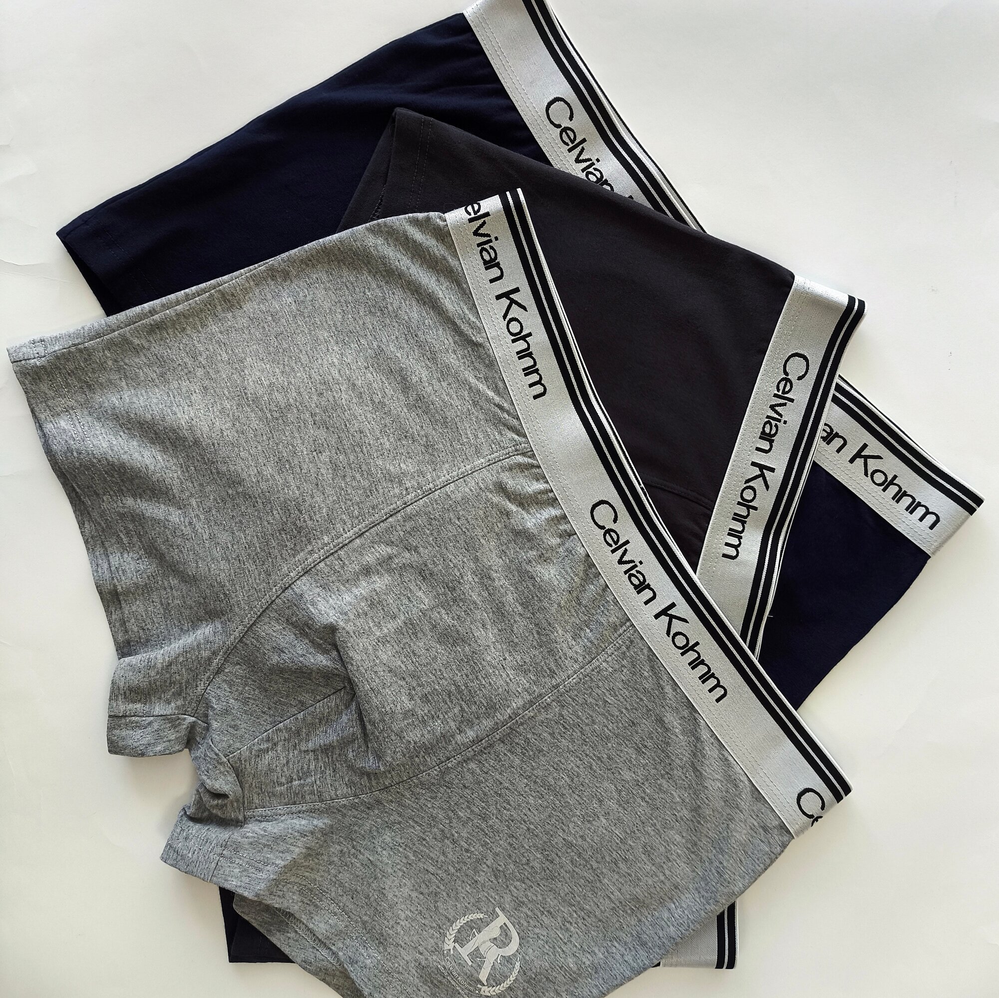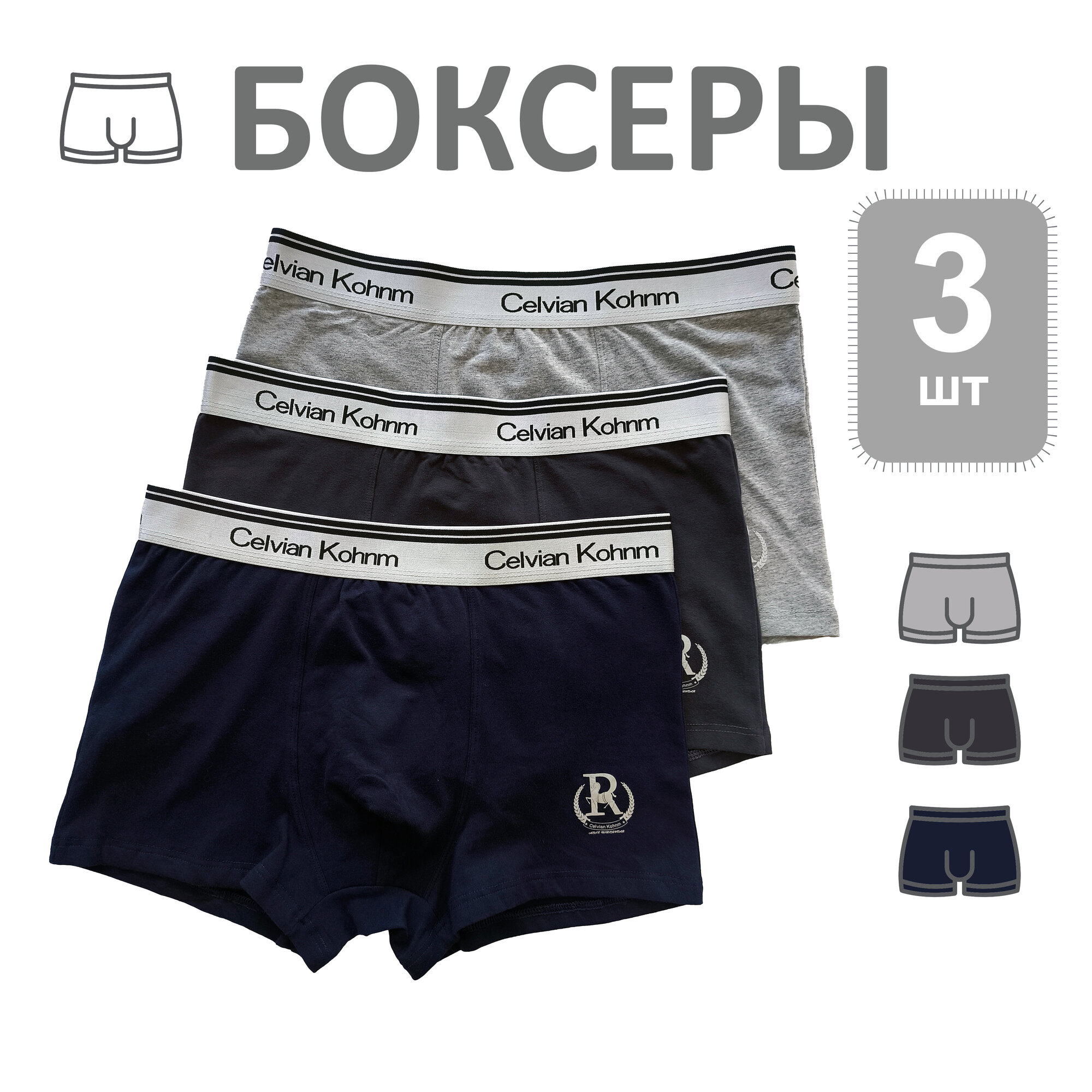 Трусы Celvian Kohnm для мужчин, боксеры мужские,, комплект из 3 шт., размер 2XL, синий, серый интересное:
