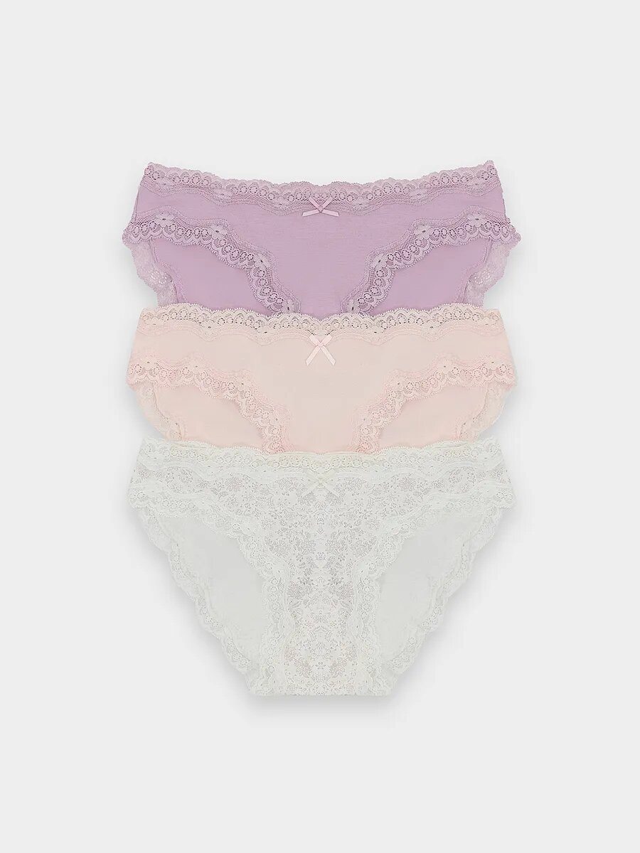 Трусы MARK FORMELLE Нижнее белье, комплект из 3 шт., размер XS, фиолетовый, серый, бежевый