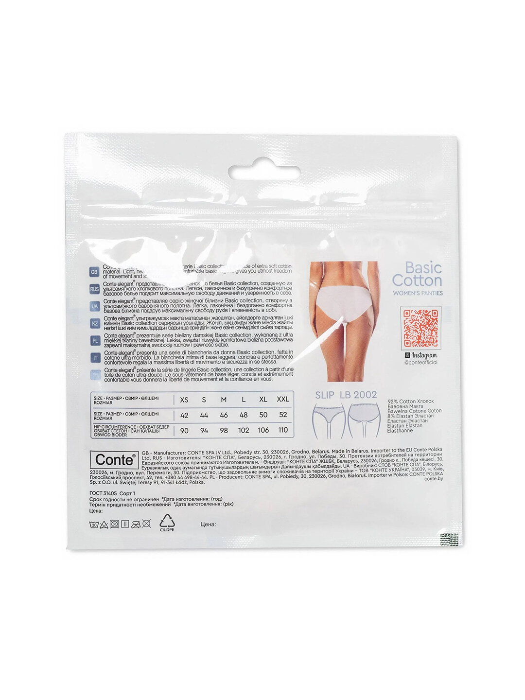 Трусы Conte elegant Basic Cotton LB 2002 slip, размер 42=XS, о/б 90 см, White=Белый