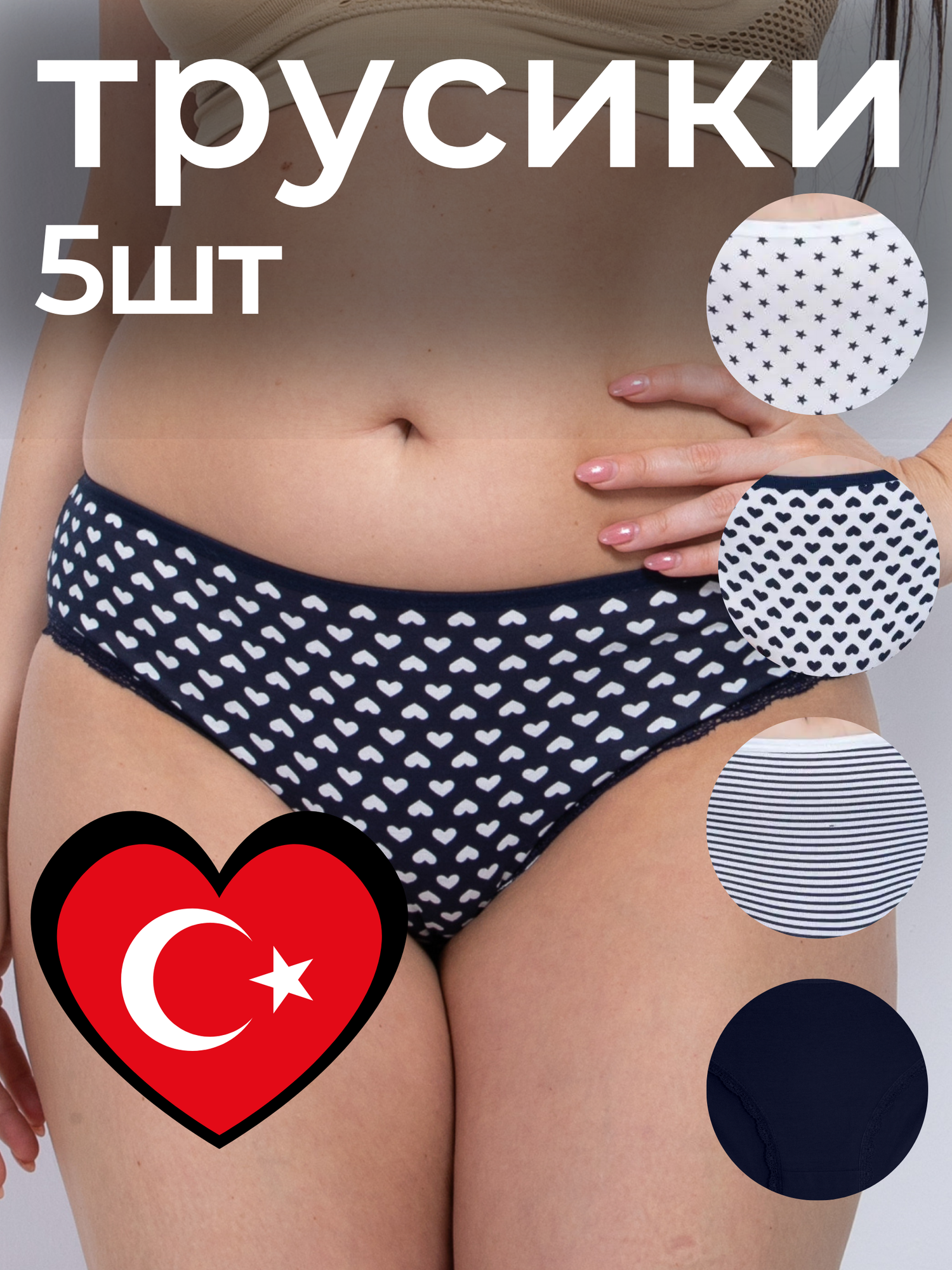 Трусы ALYA Underwear Нижнее белье, комплект из 5 шт., размер 3XL (50-52), белый/синий