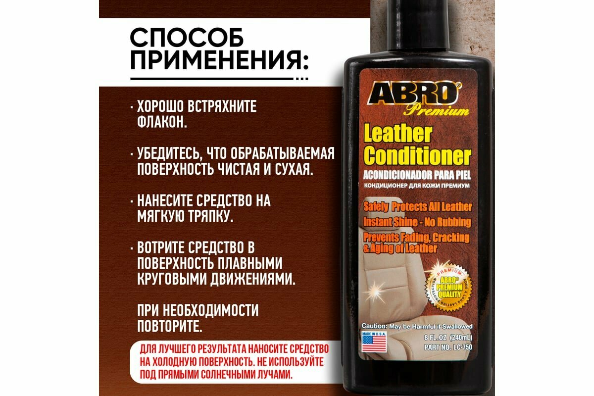 Кондиционер для кожи и винила автомобиля ABRO Premium / Made in U.S.A. / Кондиционер для ухода за кожей универсальный 240 мл. LC-750
