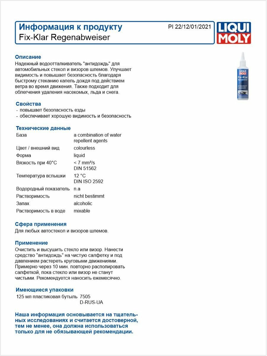 Антидождь LIQUI MOLY Fix-klar Regenabweiser, 7505 0.125 л