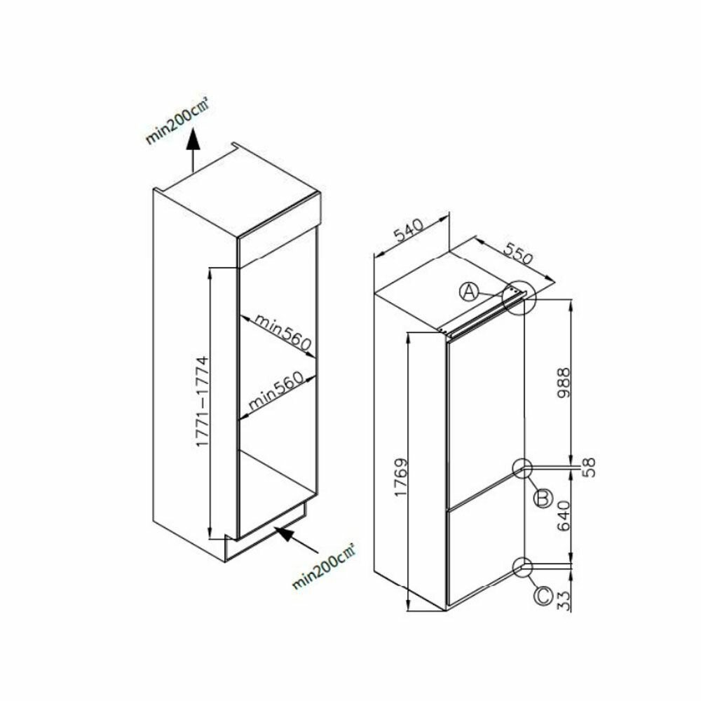 Встраиваемый двухкамерный холодильник MAUNFELD MBF177SW