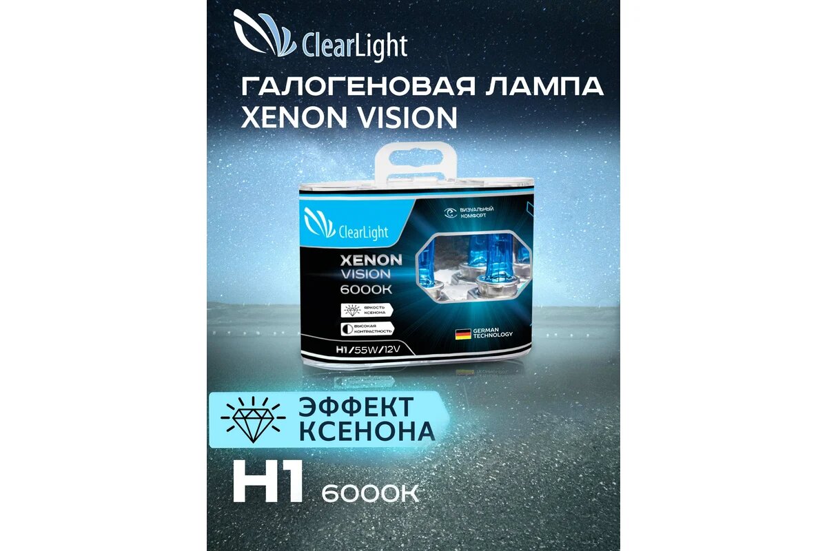 CLEARLIGHT Лампа галогенная CLEARLIGHT XenonVision 12V H1 55W 2 шт MLH1XV