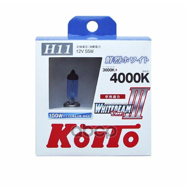 Купить Лампа Высокотемпературная Koito Whitebeam H11 12v 55w (100w) 4000k (Комплект 2 Шт.) KOITO арт. P0750W