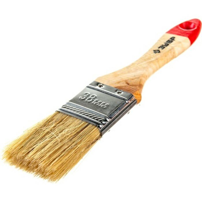 Малярная кисть ЗУБР универсал, 38 мм, 1,5″, светлая натуральная щетина, деревянная ручка, все виды ЛКМ, плоская кисть (4-01001-038)