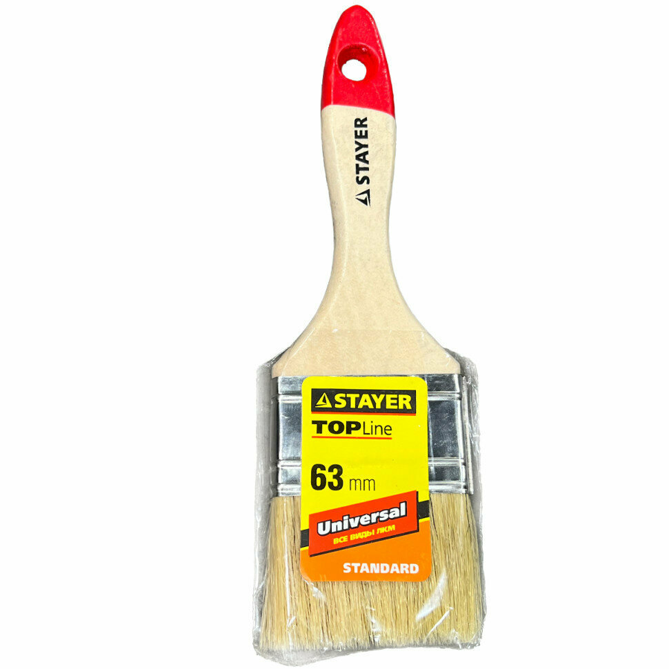 STAYER Universal 63 мм, 2,5″ светлая натуральная щетина, деревянная ручка, Плоская кисть, STANDARD (0101-063)