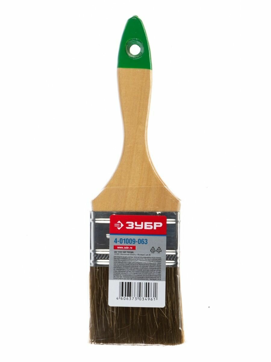 ЗУБР Лазурь 63 мм, 2,5 светлая смешанная щетина, деревянная ручка, Плоская кисть, мастер (4-01009-063)