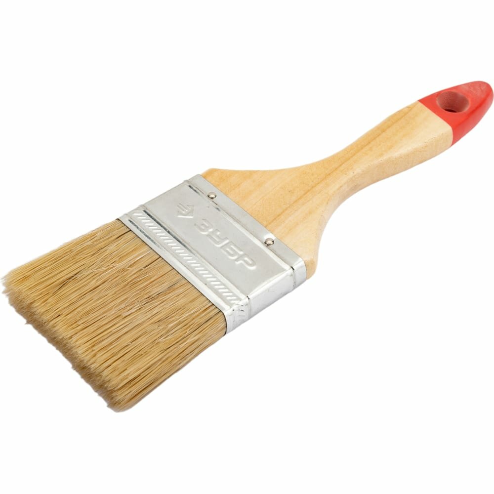 Купить Малярная плоская кисть ЗУБР Универсал 63 мм 2,5'' натуральная светлая щетина деревянная ручка 4-01003-063
