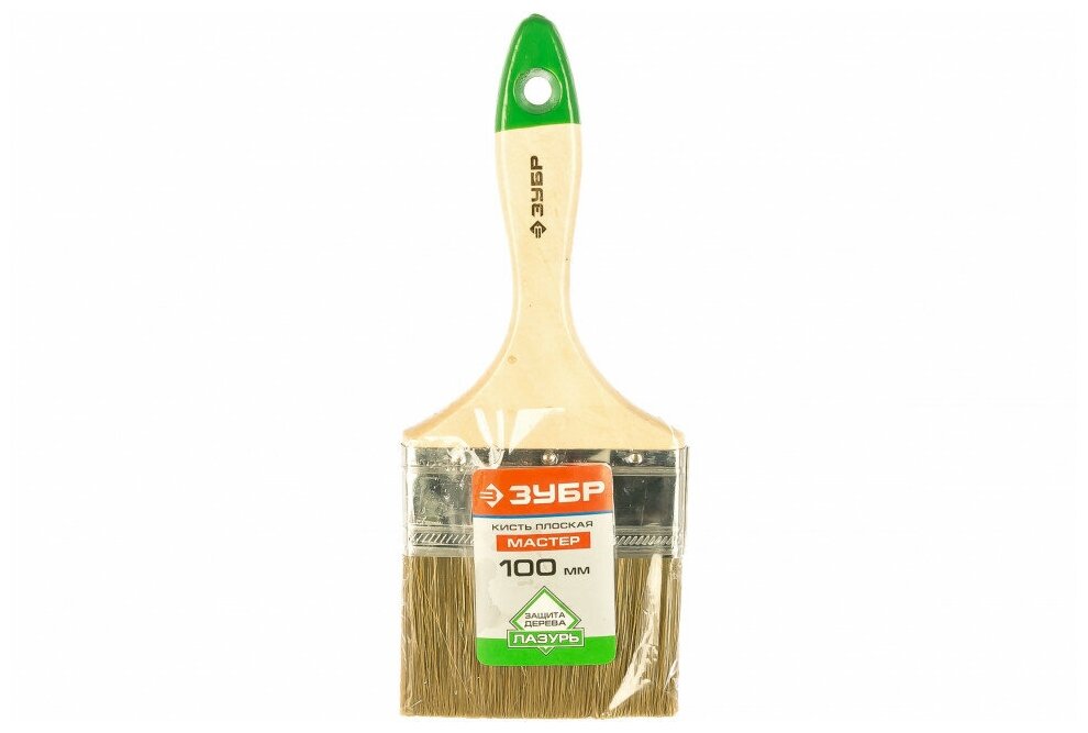 ЗУБР Лазурь 100 мм, 4 светлая смешанная щетина, деревянная ручка, Плоская кисть, мастер (4-01009-100)