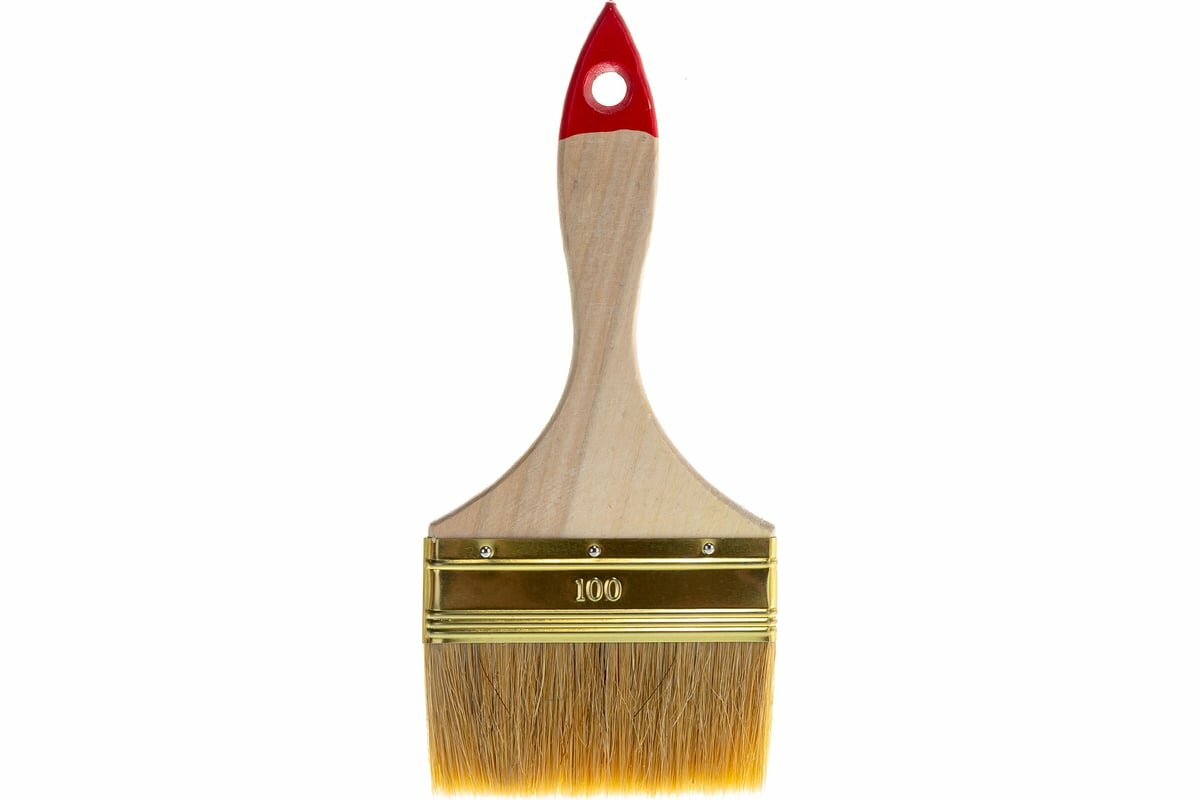 Плоская кисть ЗУБР Универсал 100 мм 4 светлая натуральная щетина деревянная ручка (01099-100_z01)