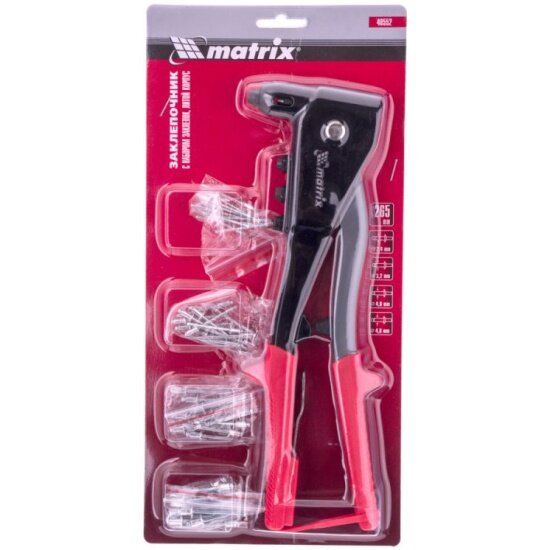 Купить Заклепочник литой MATRIX 40552, 260 мм, с набором заклепок, заклепки 2,4-3,2-4,0-4,8 мм