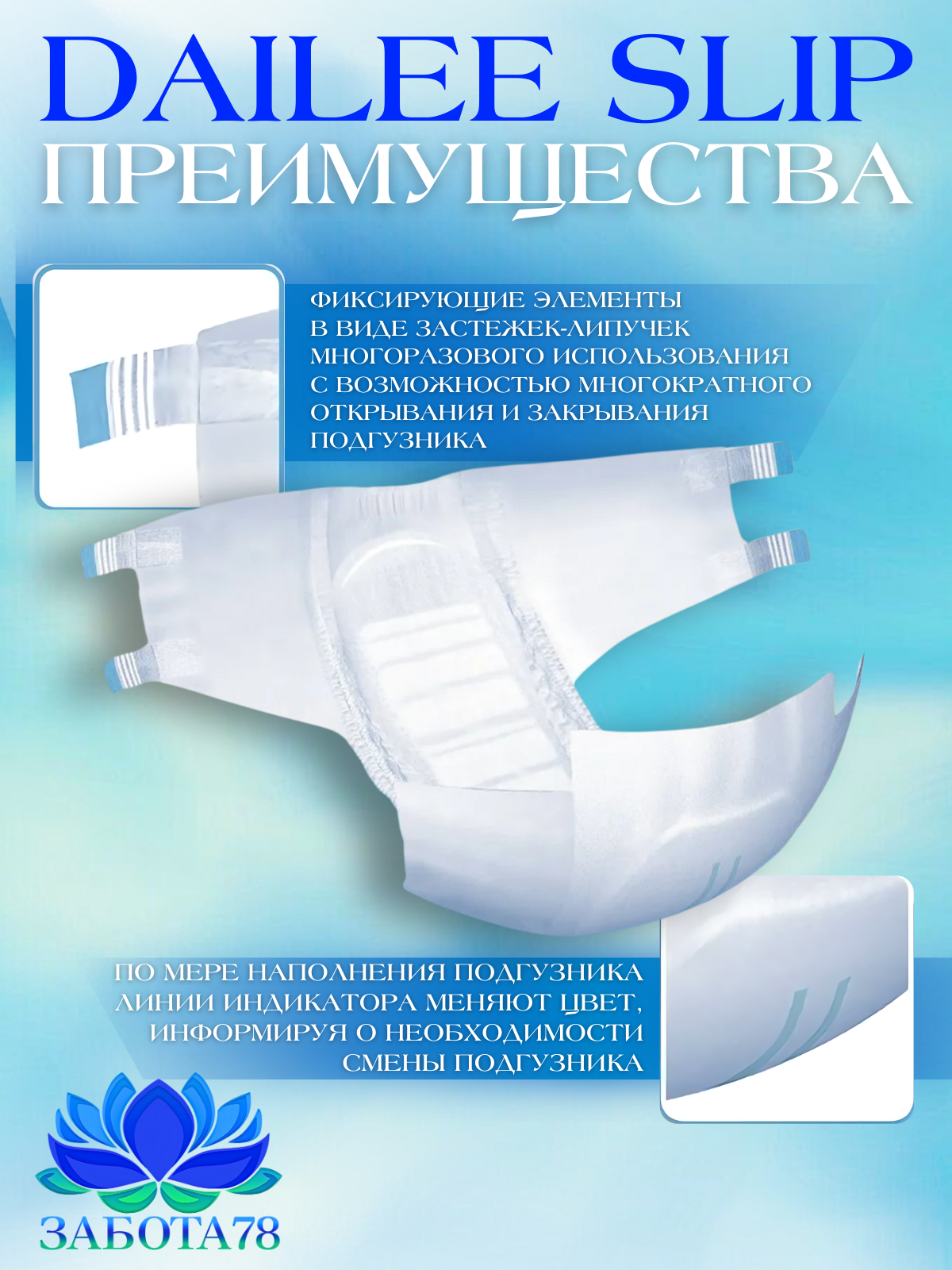 Подгузники DAILEE Slip Super XL, 1 уп.30 штук,130–175см, 8капель
