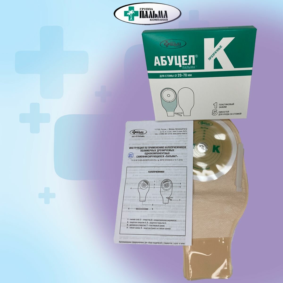 ГК «Пальма» Калоприёмники абуцел-к однокомпонентные, дренируемые, прозрачные, 20-70 мм, №5