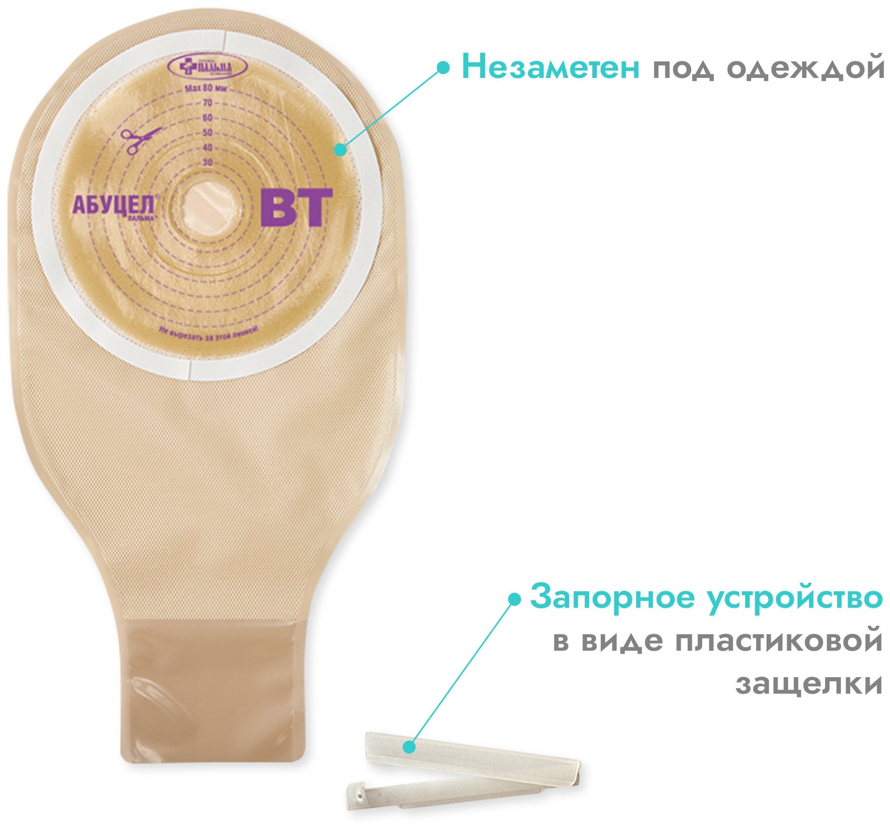 Калоприемник Абуцел-ВТ емкость для ухода за стомой +зажим 5 шт., 5 шт
