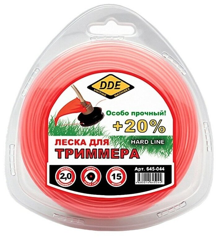 Леска для триммера DDE Hard Line 2.0mm x 15m GreI-Red 645-044
