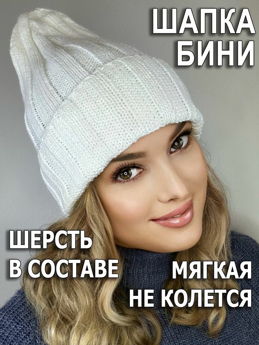 Шапка-бини Lesnikova Design для женщин, размер 54-60, белый интересное:
