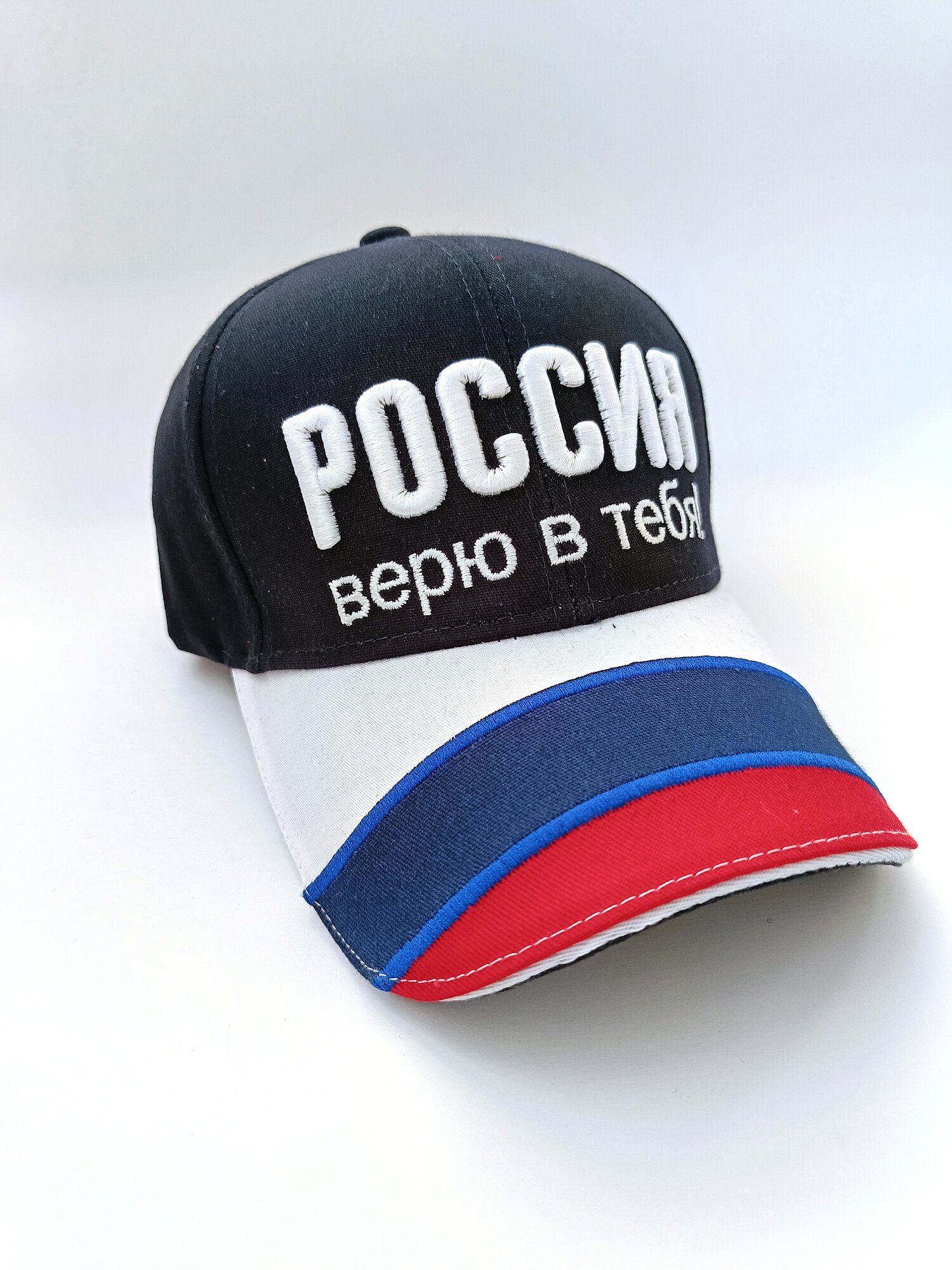 Бейсболка TodaStyle бейсболка Россия Верю в тебя для мужчин и женщин, размер 56/58, черный