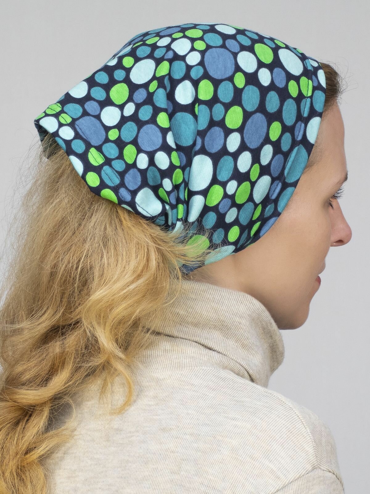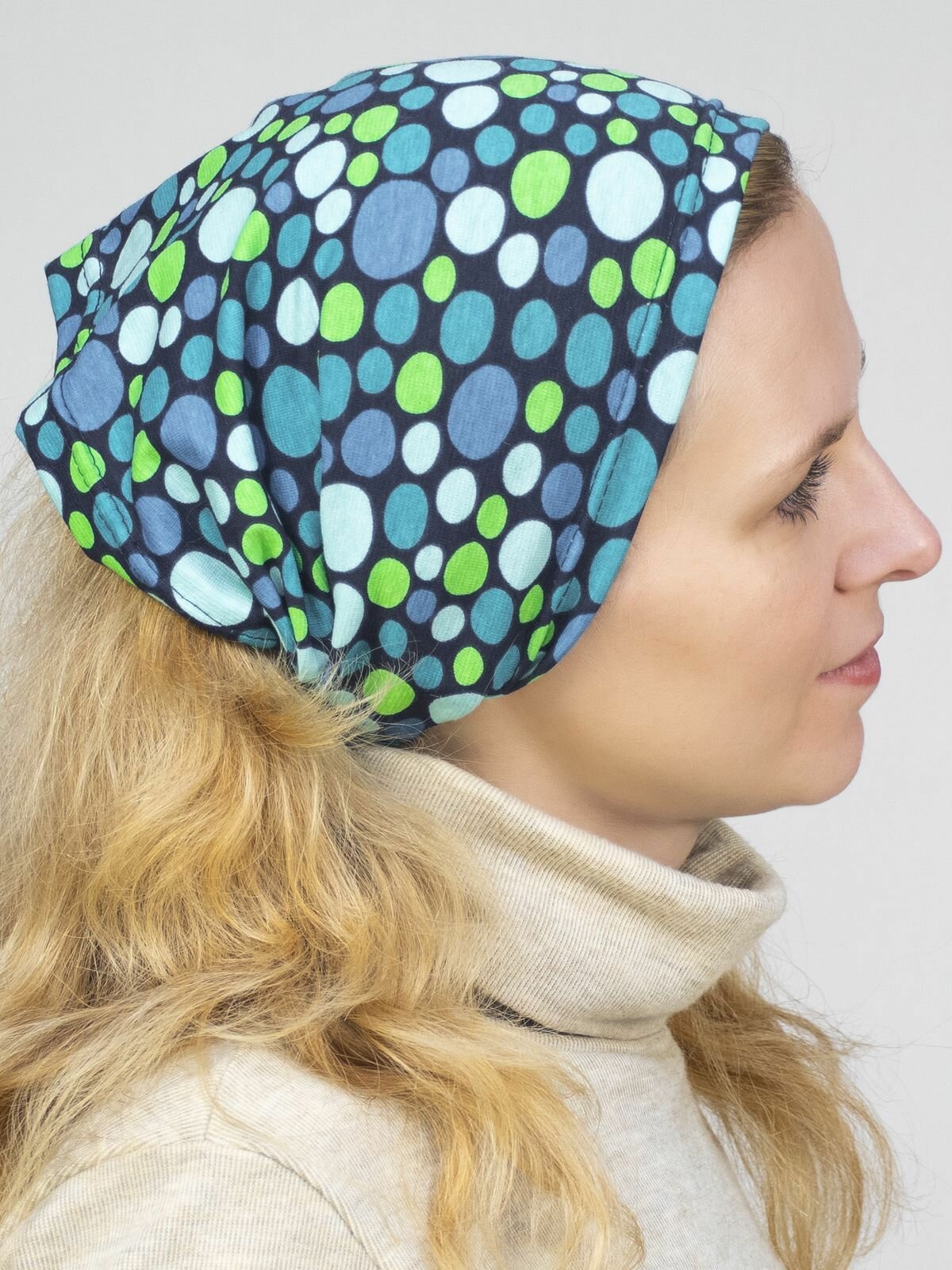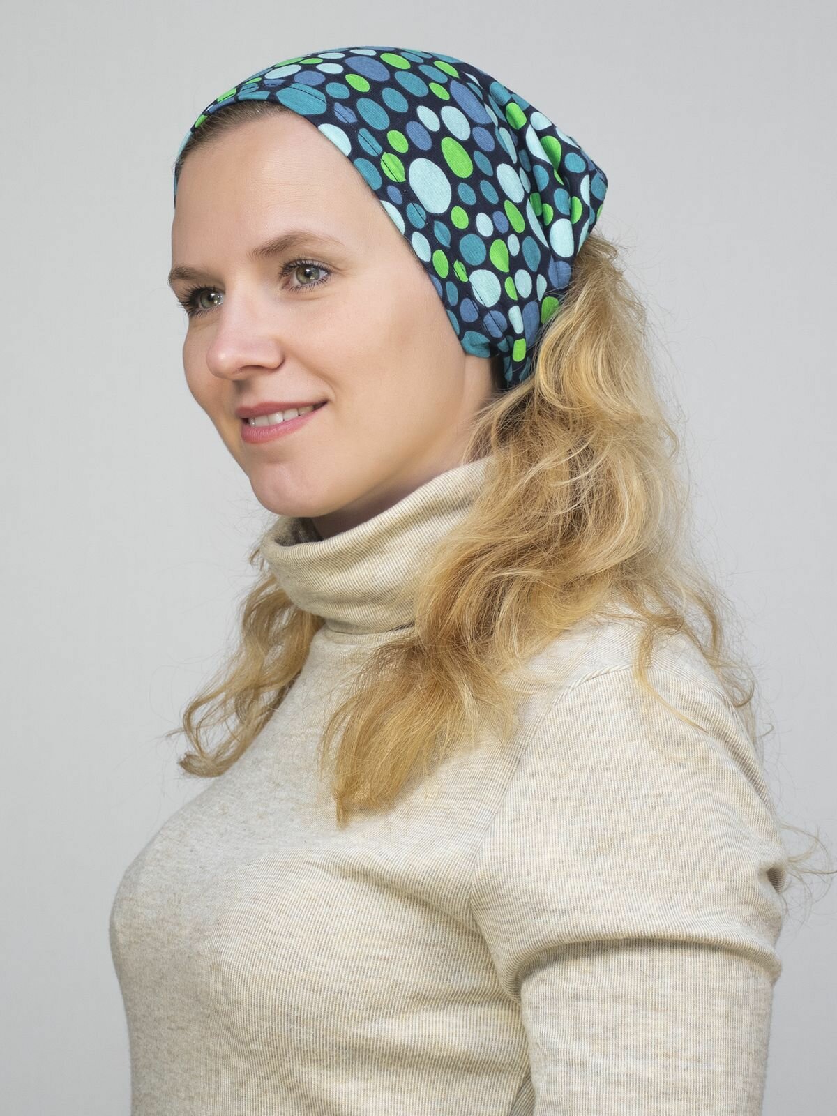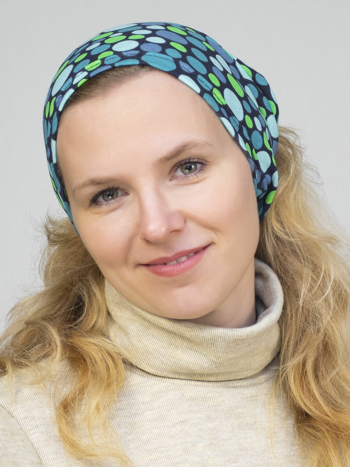 Купить Чалма LanaCaps Горох для девочек и женщин, размер 52-54, синий, зеленый, голубой