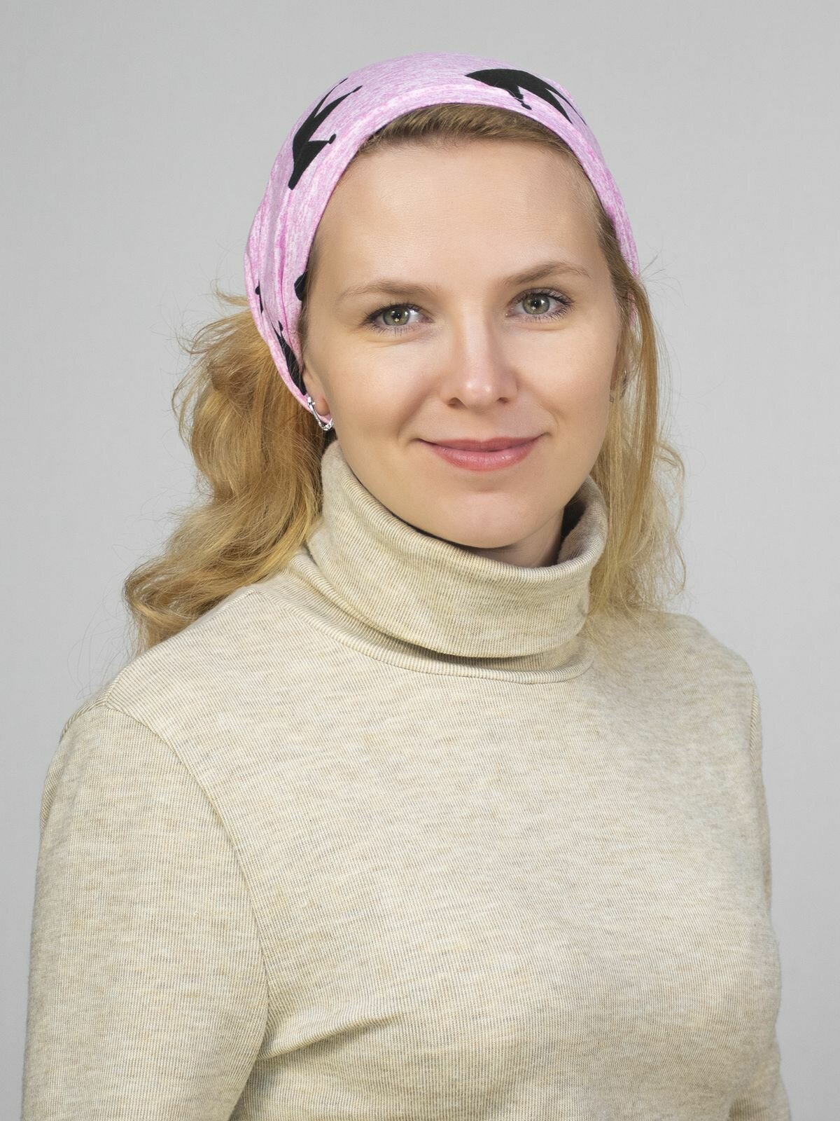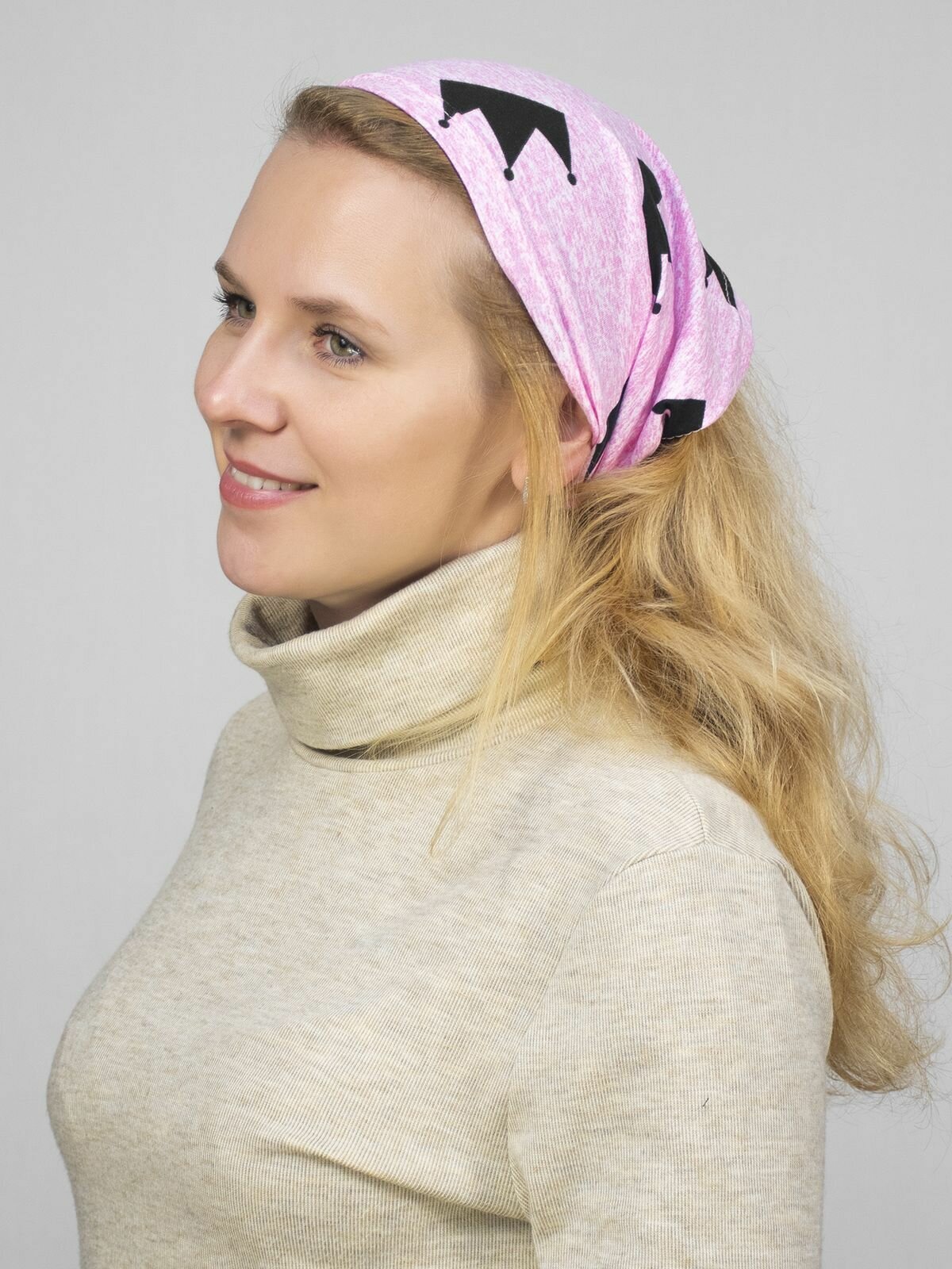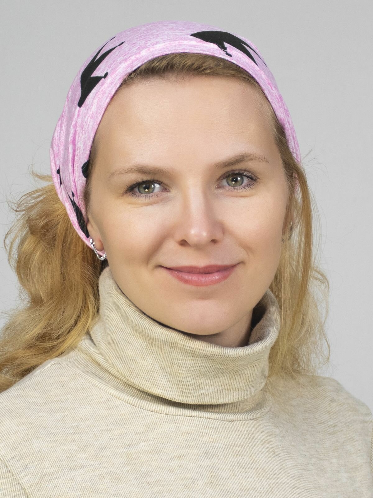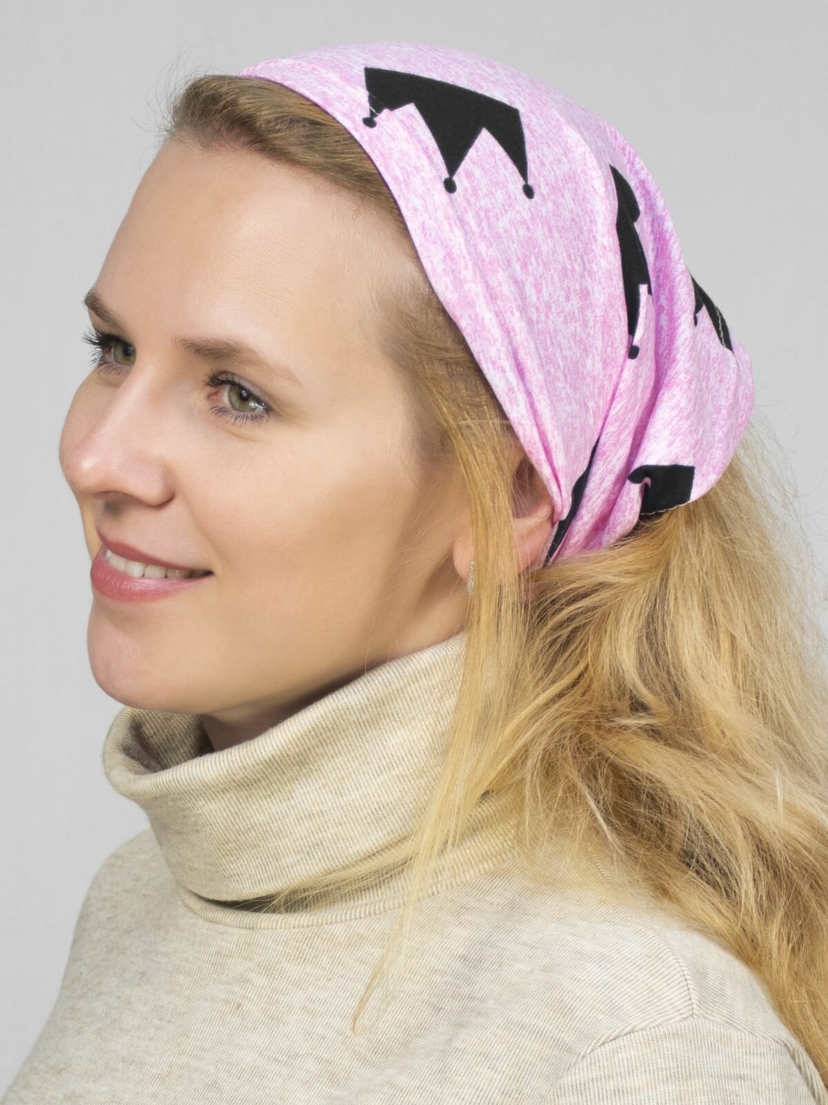 Чалма LanaCaps Звезды на пудровом для девочек и женщин, размер 48-50, пыльная роза, черный