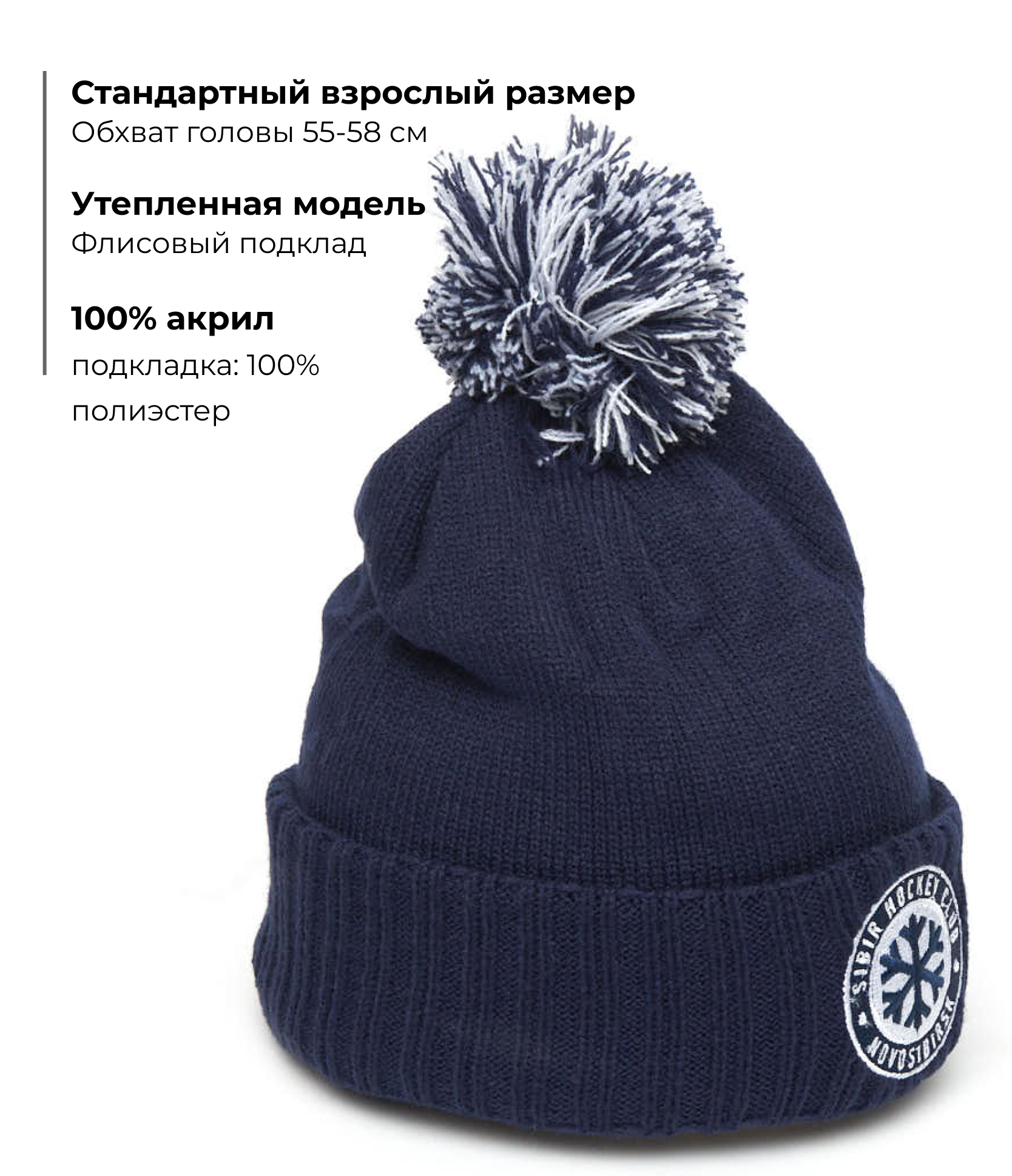 Шапка-бини Atributika & Club ХК Сибирь для взрослых и детей, размер 55-58, синий