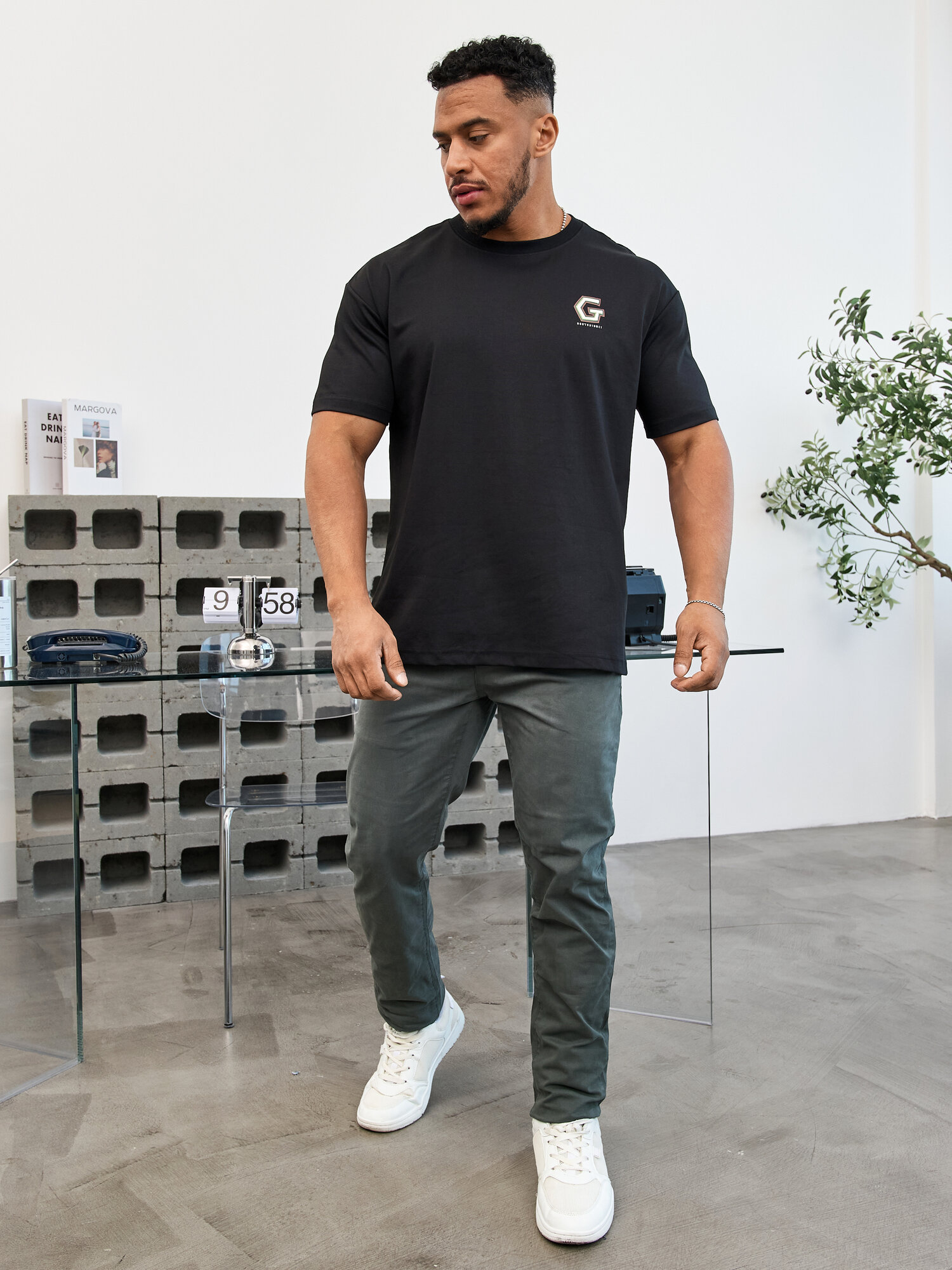 Брюки карго с утягивающими кулисками у щиколоток, цвет Черный, размер XXL N1431730L023