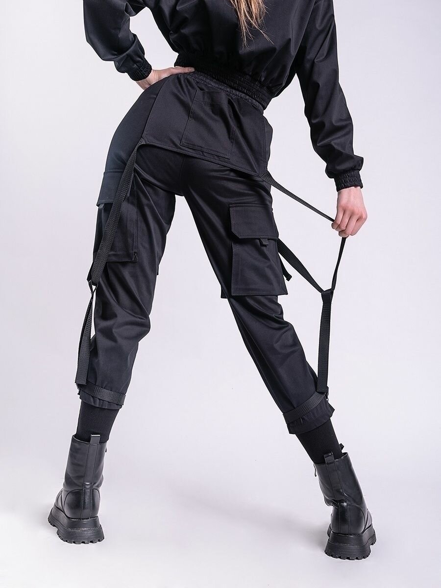Брюки джоггеры Alexander & Barri с лямками и карманами, размер M, черный