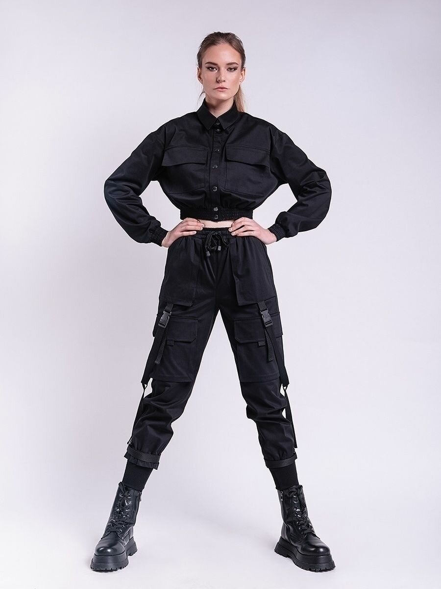 Брюки карго с утягивающими кулисками у щиколоток, цвет Черный, размер XXL N1431730L023