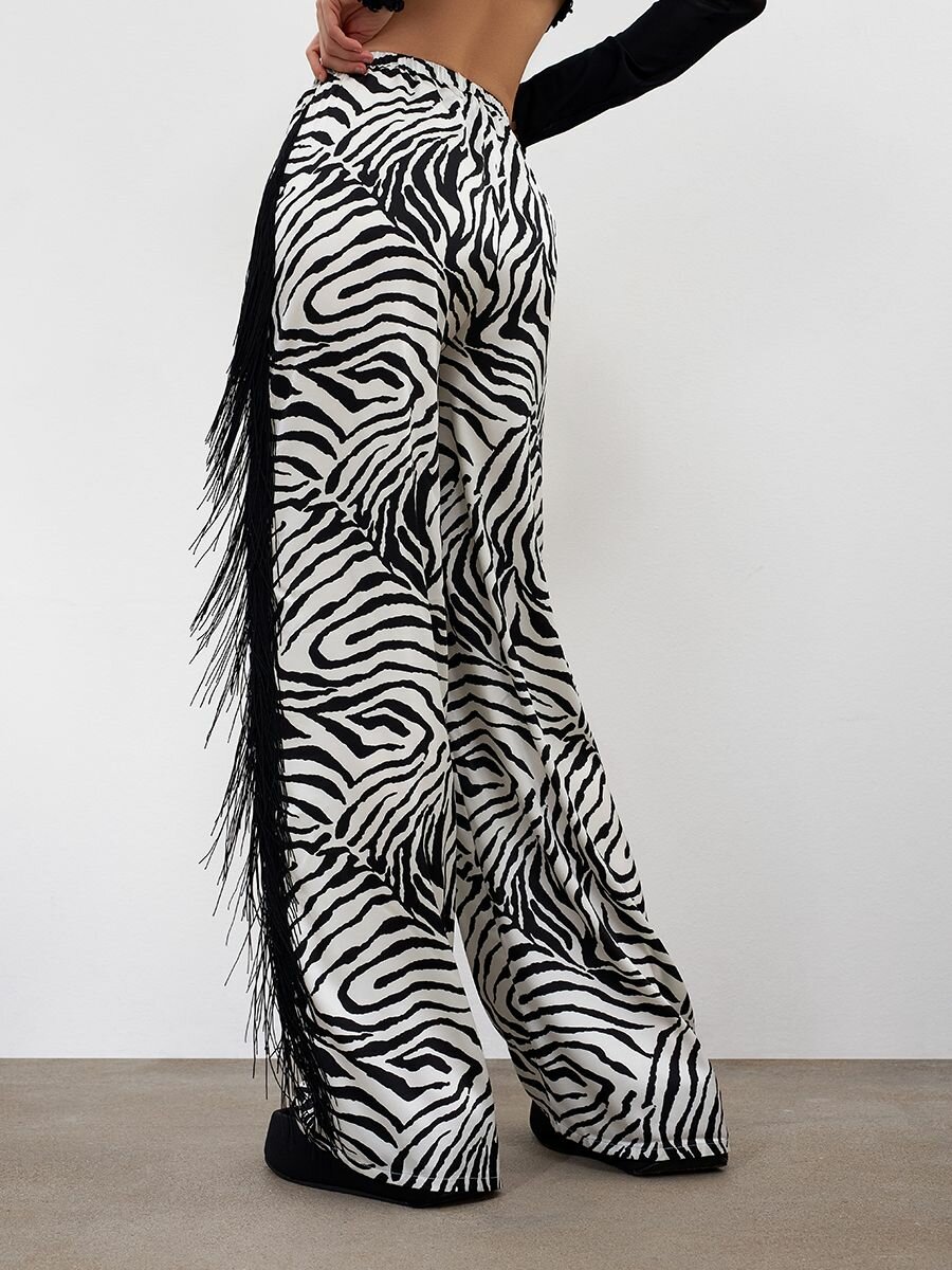 Брюки палаццо ALZA Весна-лето 2024, размер 40-42, черно-белый принт