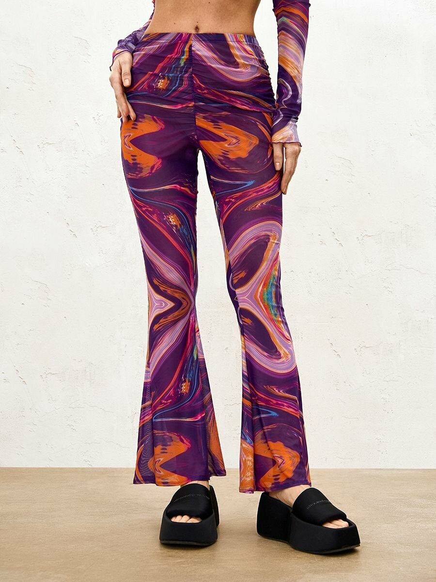 Брюки клеш ALZA Весна-лето 2025, размер 44-46, оранжевый, фиолетовый