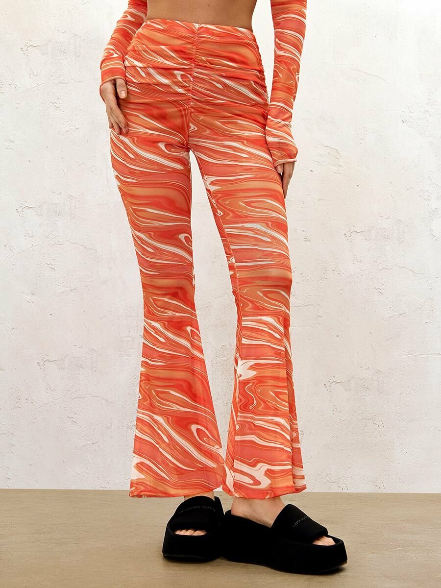 Брюки клеш ALZA Весна-лето 2025, размер 44-46, оранжевый, фиолетовый