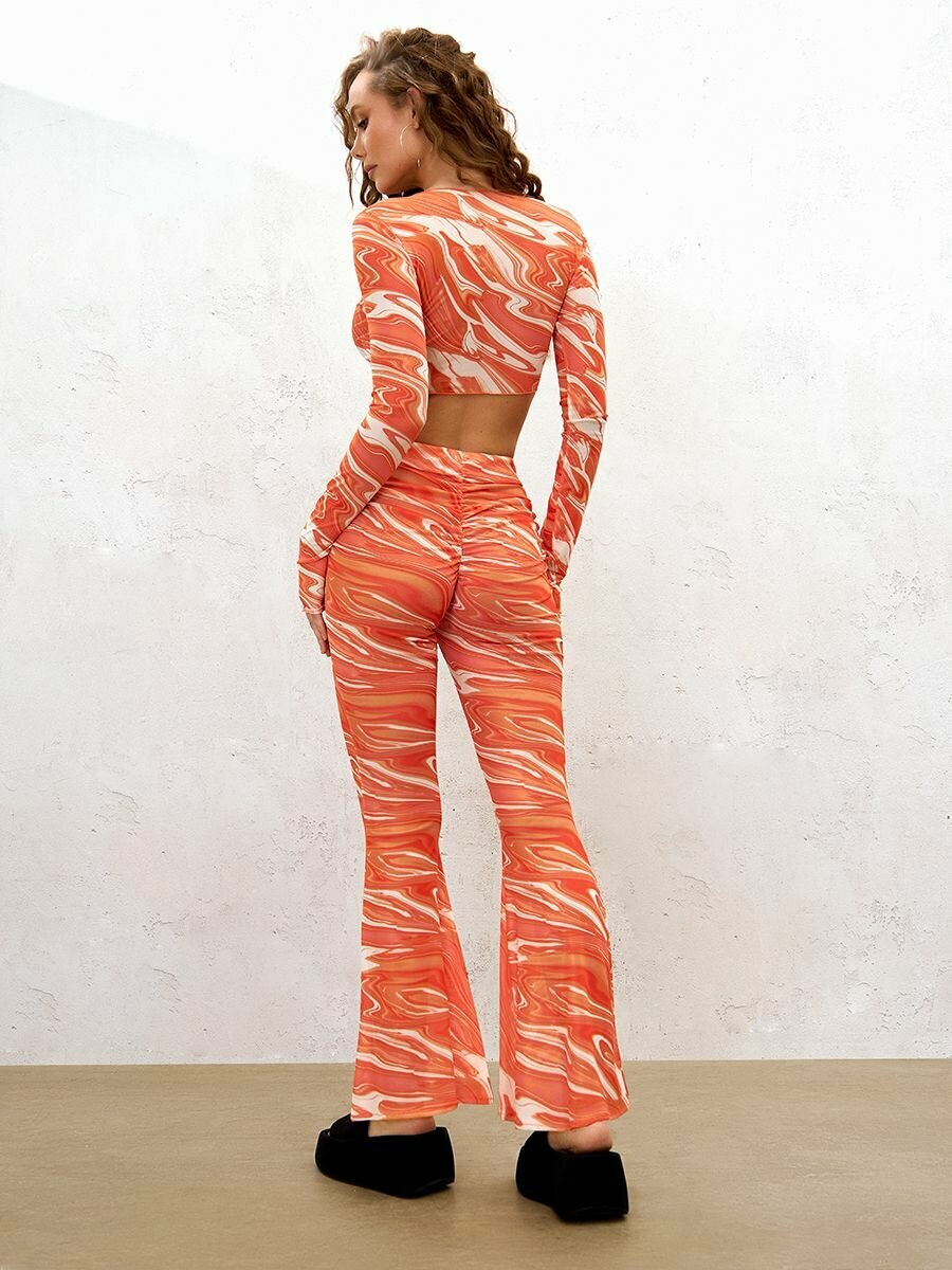 Брюки клеш ALZA Весна-лето 2025, размер 44-46, оранжевый, фиолетовый