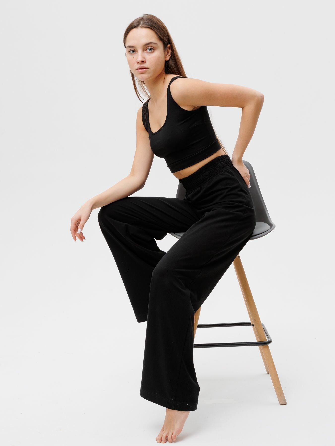 Брюки LINGEAMO Палаццо, размер XL, черный/черный
