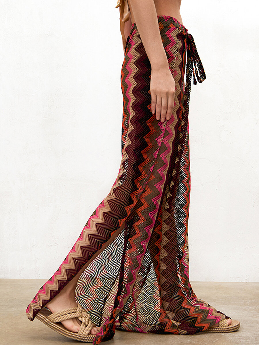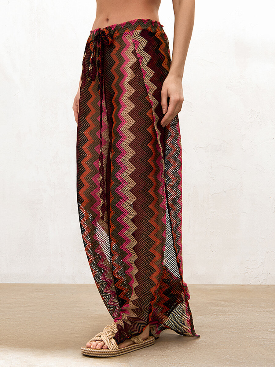 Брюки ALZA Весна-лето 2025, размер 40-42, белый, коричневый, оранжевый