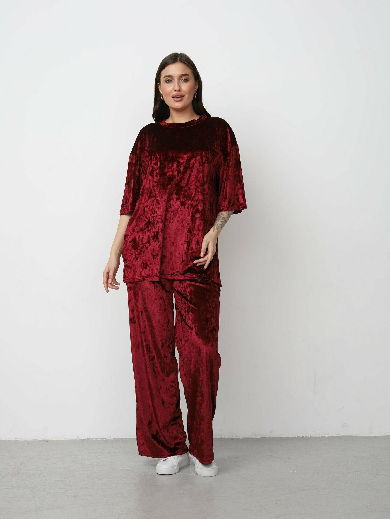 Брюки палаццо BUY-TEX.RU женские, палаццо, размер 46, бордо