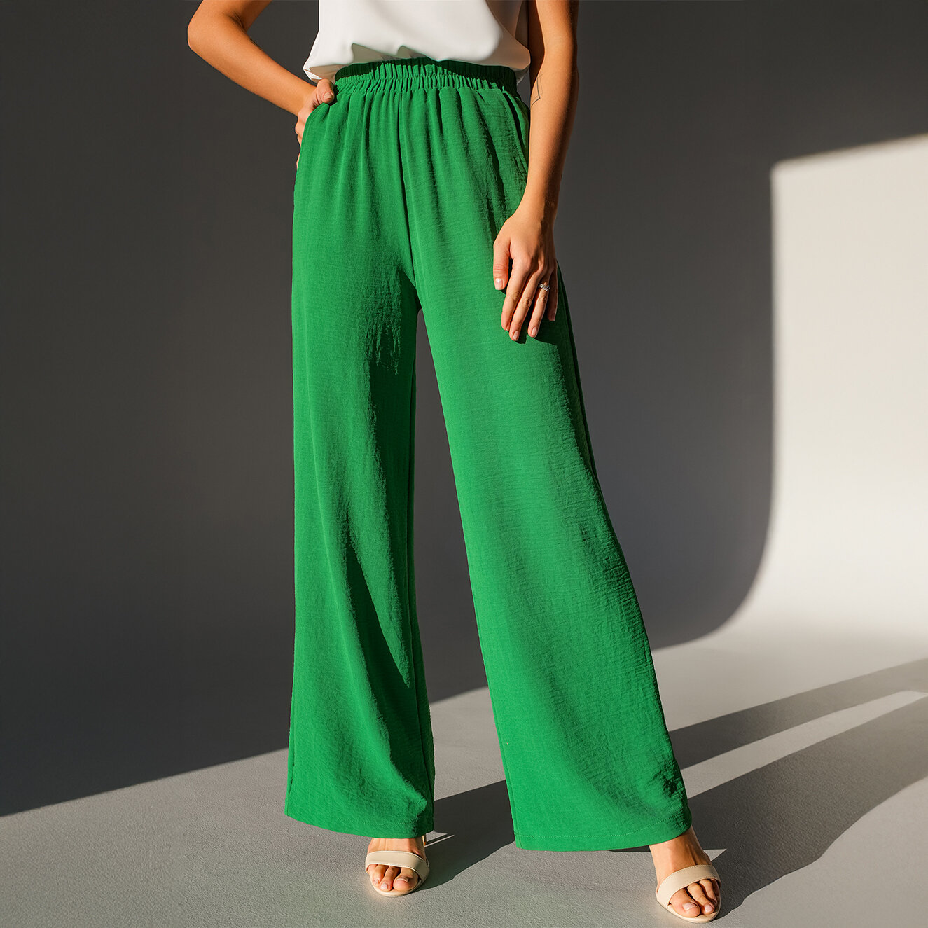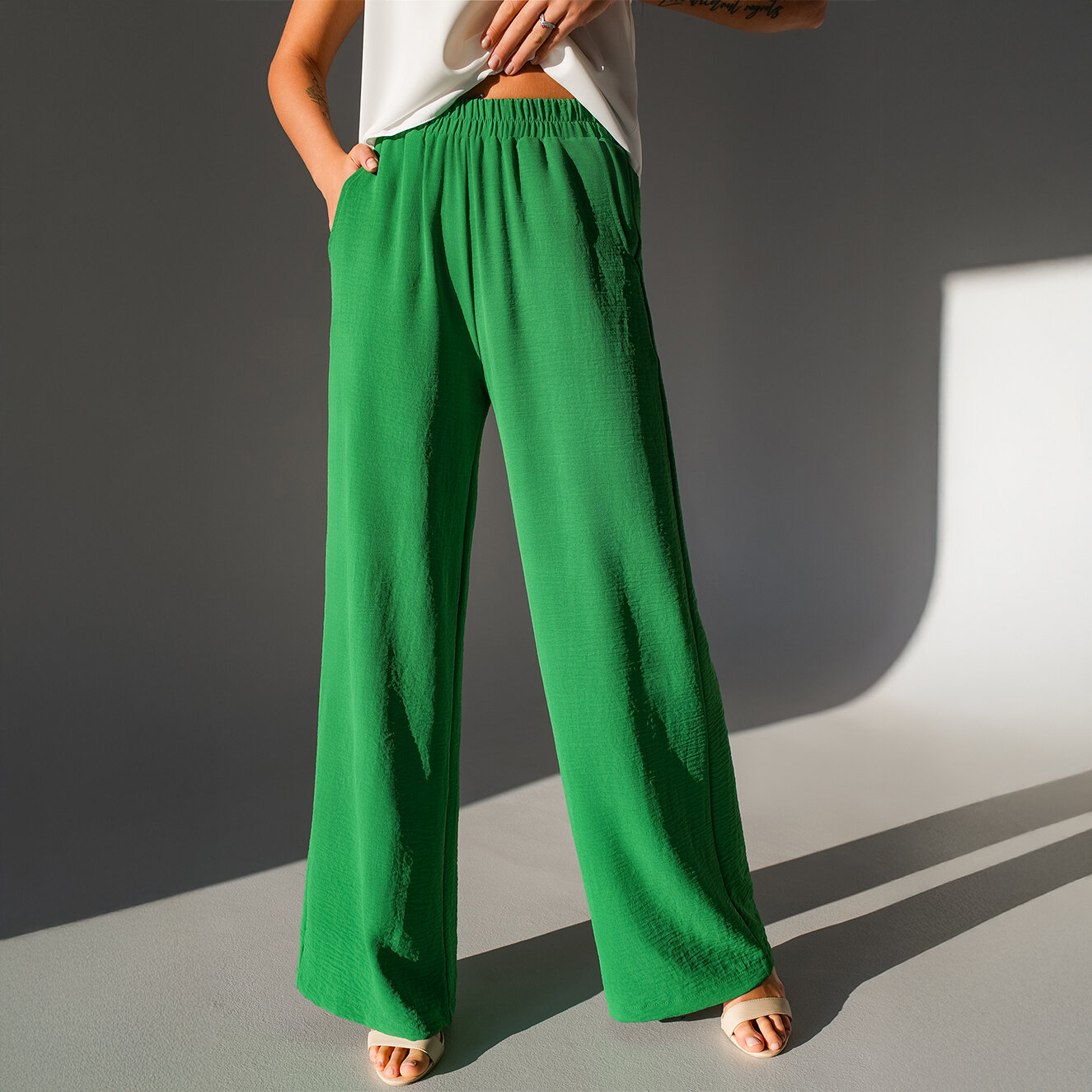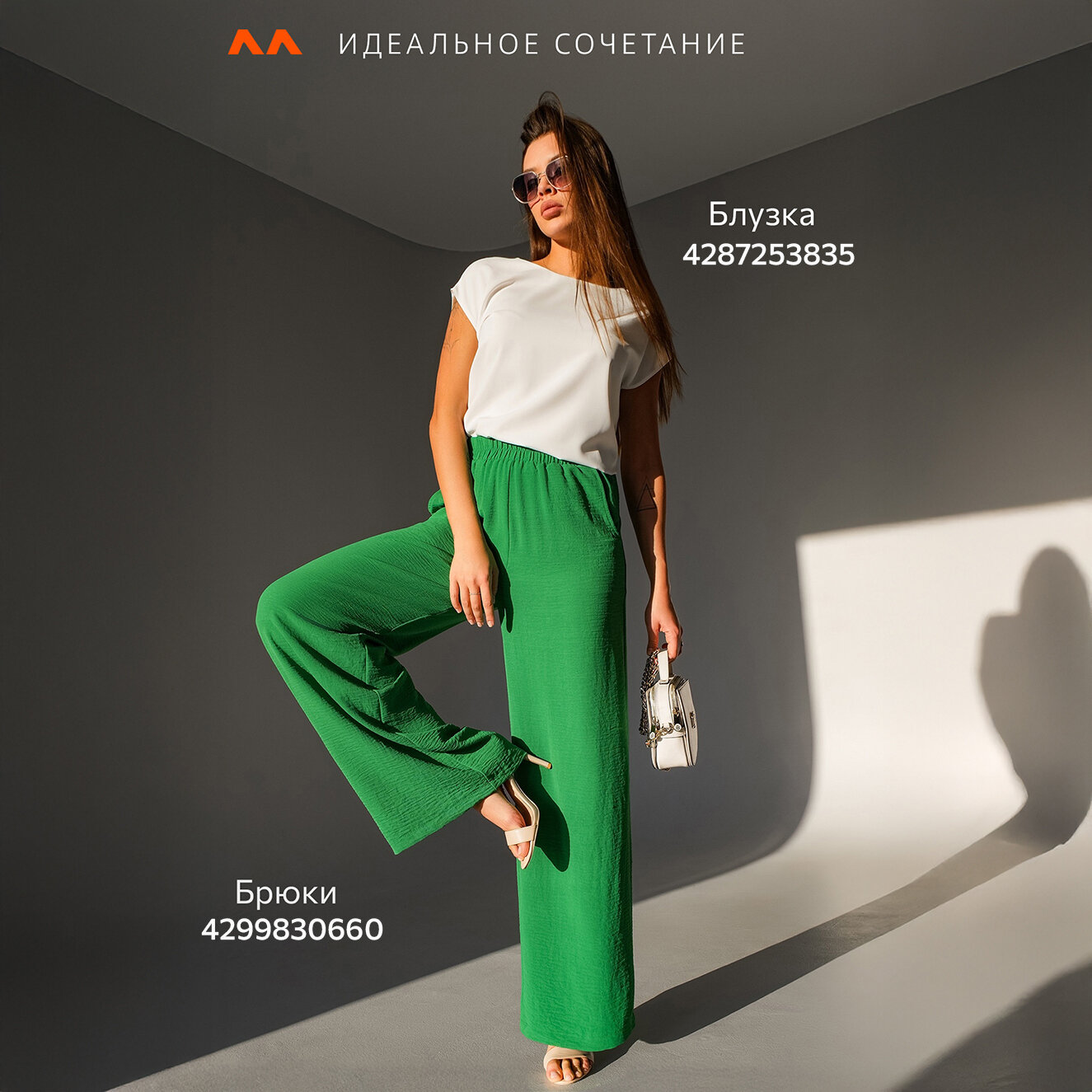 Брюки палаццо Happyfox Для женщин, размер 48, зелёный интересное: