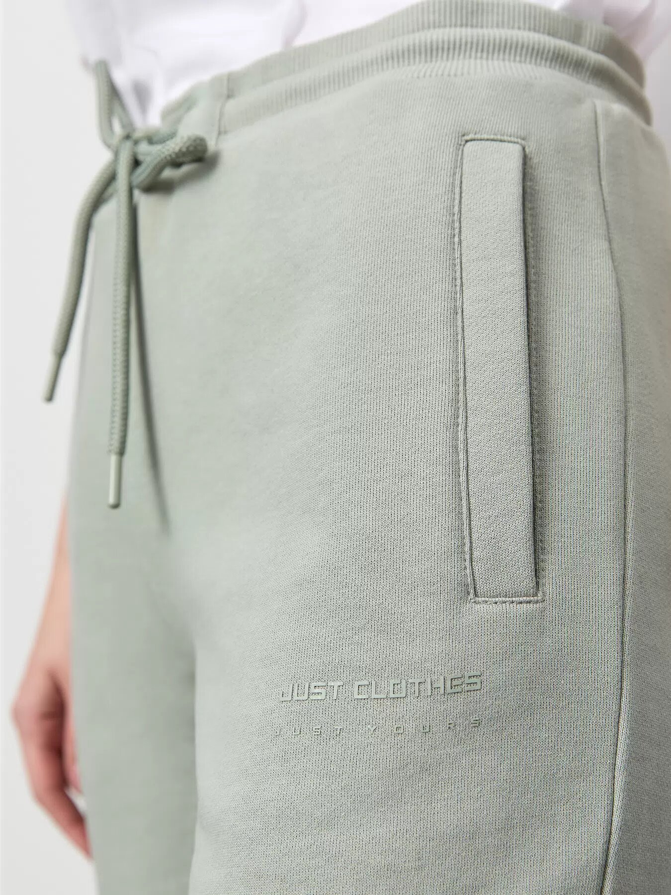 Купить Брюки спортивные JUST CLOTHES Светло-зеленый. Декор термологотип. Карманы спереди 2 б/заст, сзади нет. Пояс резинка+утяг шнурок. Д, размер S, зелёный