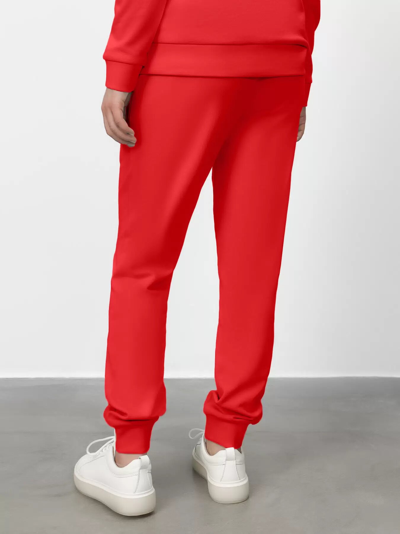 Брюки спортивные JUST CLOTHES Красный. Декор термологотип. Карманы сбоку по шву 2 б/заст, сзади нет. Пояс резинка+утяг шнурок. Д, размер M, красный