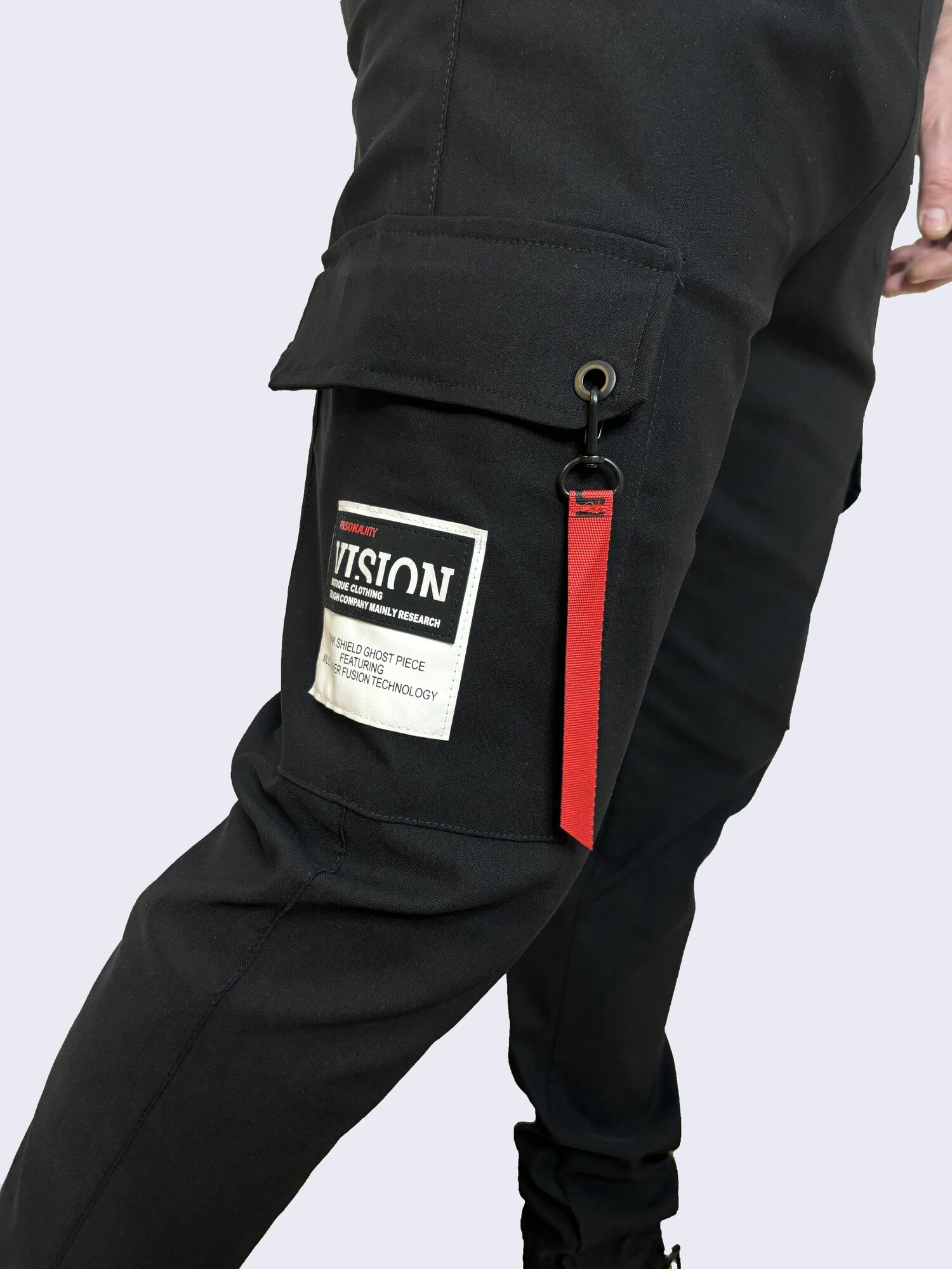 Брюки джоггеры Весна-лето 2025, размер M, черный, красный